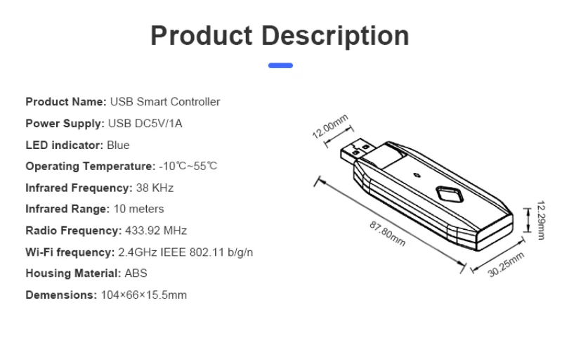 Controlador USB IR + RF Tuya para ventilador RF de TV/luz/Control remoto Control de voz funciona con Amazon Alexa Assistant