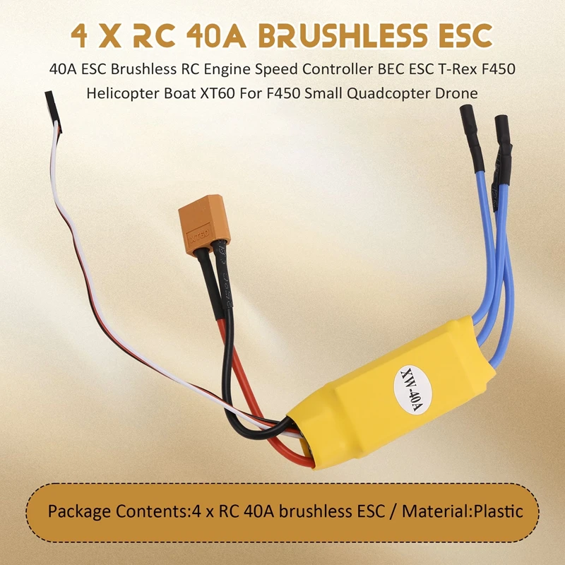 Comprar Controlador de velocidad del motor RC sin escobillas, 40A ESC BEC ESC t-rex F450 helicóptero barco XT60 para FPV F450 Quadcopter pequeño Drone