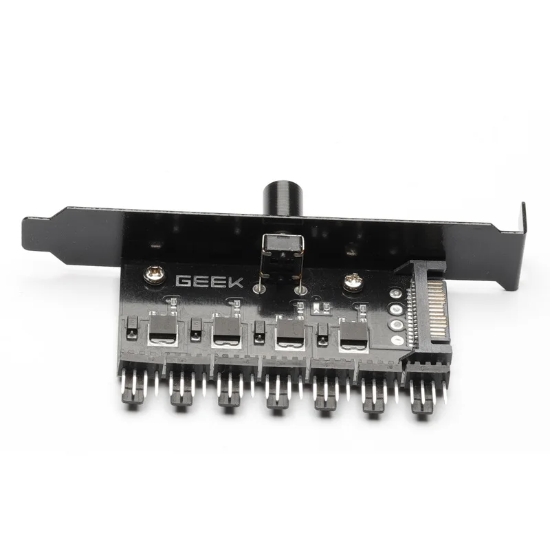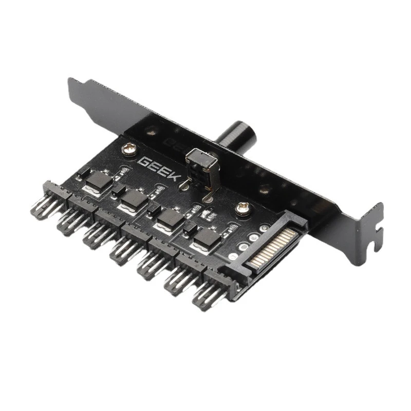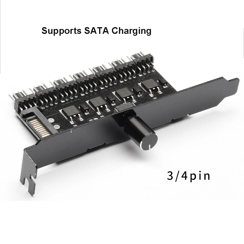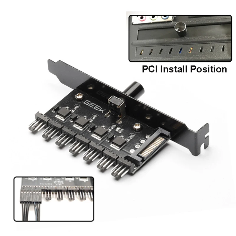 Ventilador de refrigeración de 7 vías, controlador de velocidad, divisor de Cable, 3 pines, 4 pines, radiador de carga Sata para carcasa de PC, Kits de refrigeración del Gobernador de temperaturaCaracterística:1. La vía única no admite un ventilador grande de 1A, el divisor no viene con cable de ventilador de extensión, cable de extensión de alimentación.2. El paquete viene con un tornillo para fijar en lugar PCI.3. La perilla ajusta el voltaje de potencia, algunos ventiladores admiten 7V de potencia para arrancar, algunos ventiladores necesitan 12V de potencia para arrancar4. Cuando se ajusta el voltaje de alimentación del ventilador, aparece un fenómeno virtual, como que el ventilador no arranca o la velocidad no cambia por un tiempo.Es normal , no es un problema de calidad.