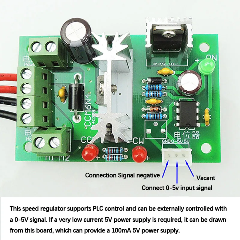 1. Can adjust the low speed, low noise, can control the motor is reversing, support for PLC control, external 5V signal can be adjusted speed, this product with positive and negative indicator and power indicator