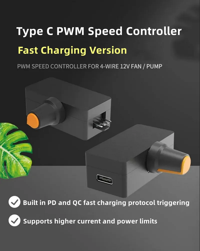 Controlador de velocidad PWM tipo C de alta potencia, 12V, 4 pines, controlador de ventilador violento, PD QC, fuente de alimentación de carga rápida, radiador de refrigeración por agua DIY