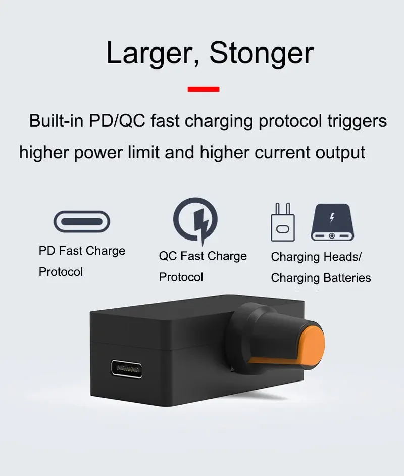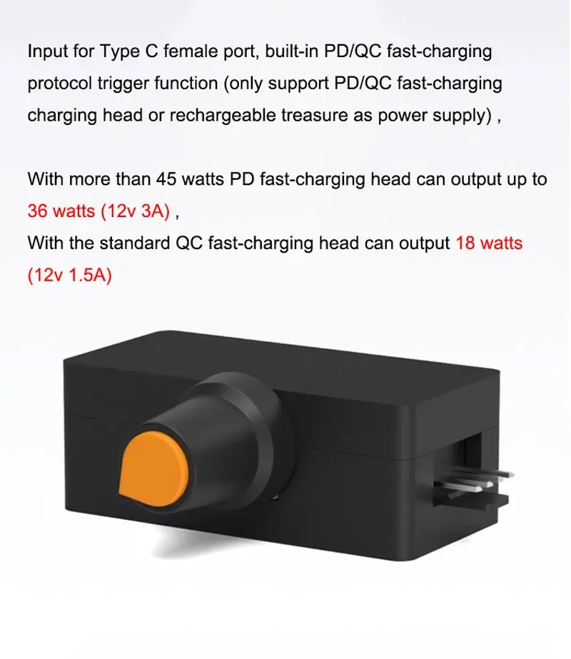 Se recomienda utilizar un cabezal de cargador rápido PD/QC estándar o un tesoro de carga (con engranaje de 12V).