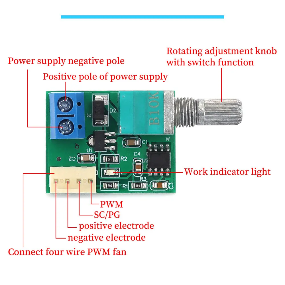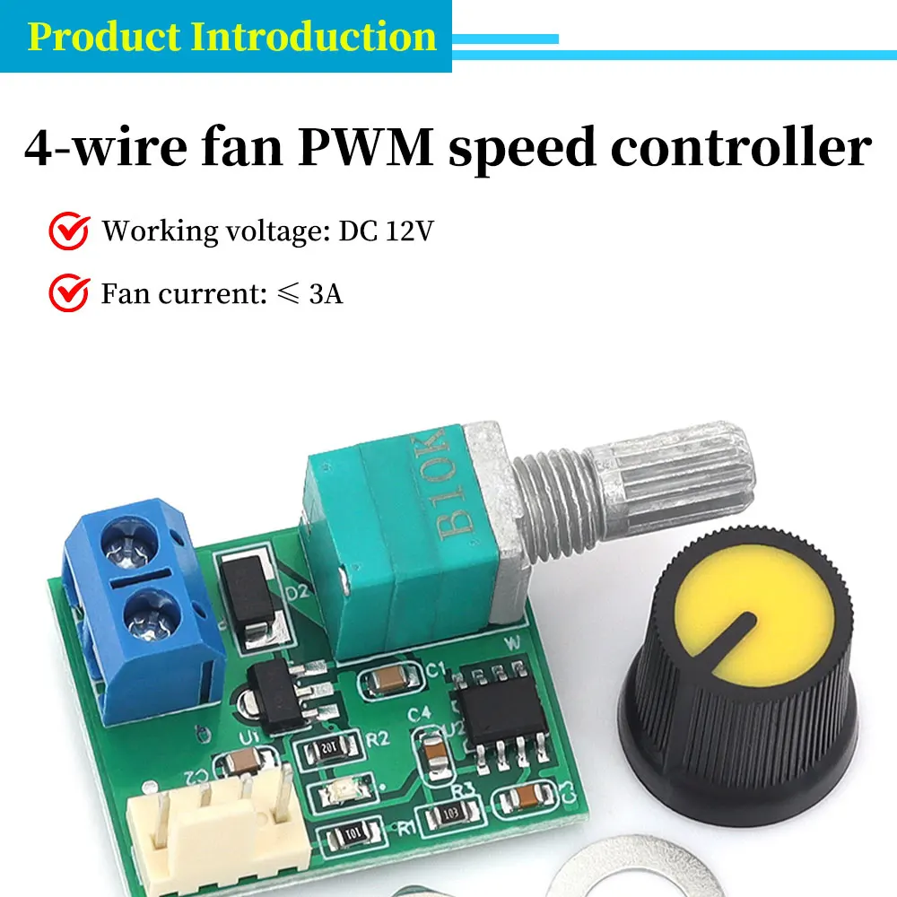 【Corriente del ventilador】 ≤ 3A (Para controlar un ventilador con una corriente mayor, simplemente conecte dos cables gruesos a los polos positivo y negativo del ventilador a la fuente de alimentación)