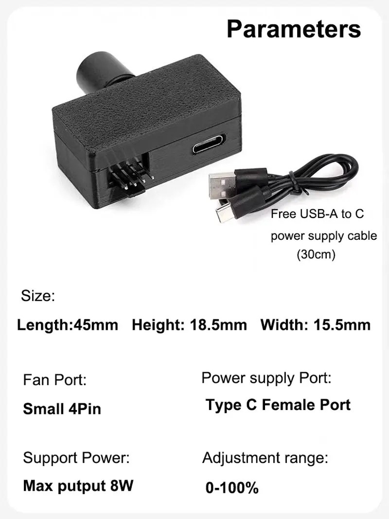 Comprar Controlador de velocidad del ventilador Angitu, regulador de ventilador PWM de 4 pines, fuente de alimentación USB a TYPE-C, Enfriador de refrigeración por agua DIY de alta potencia
