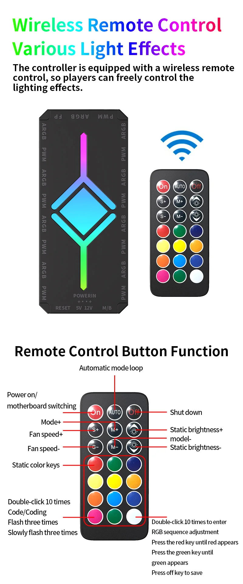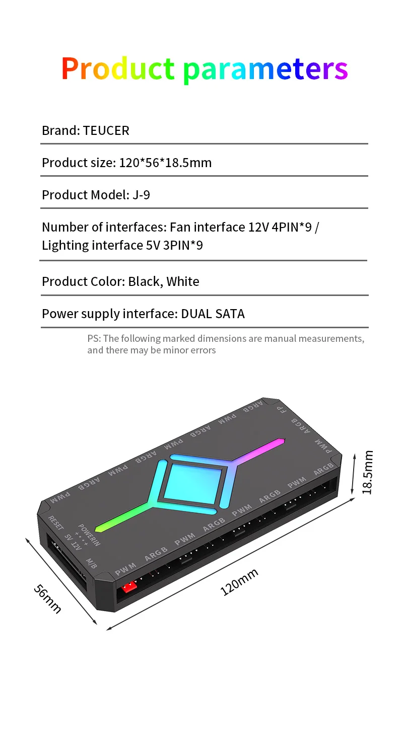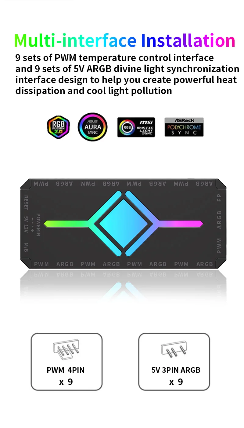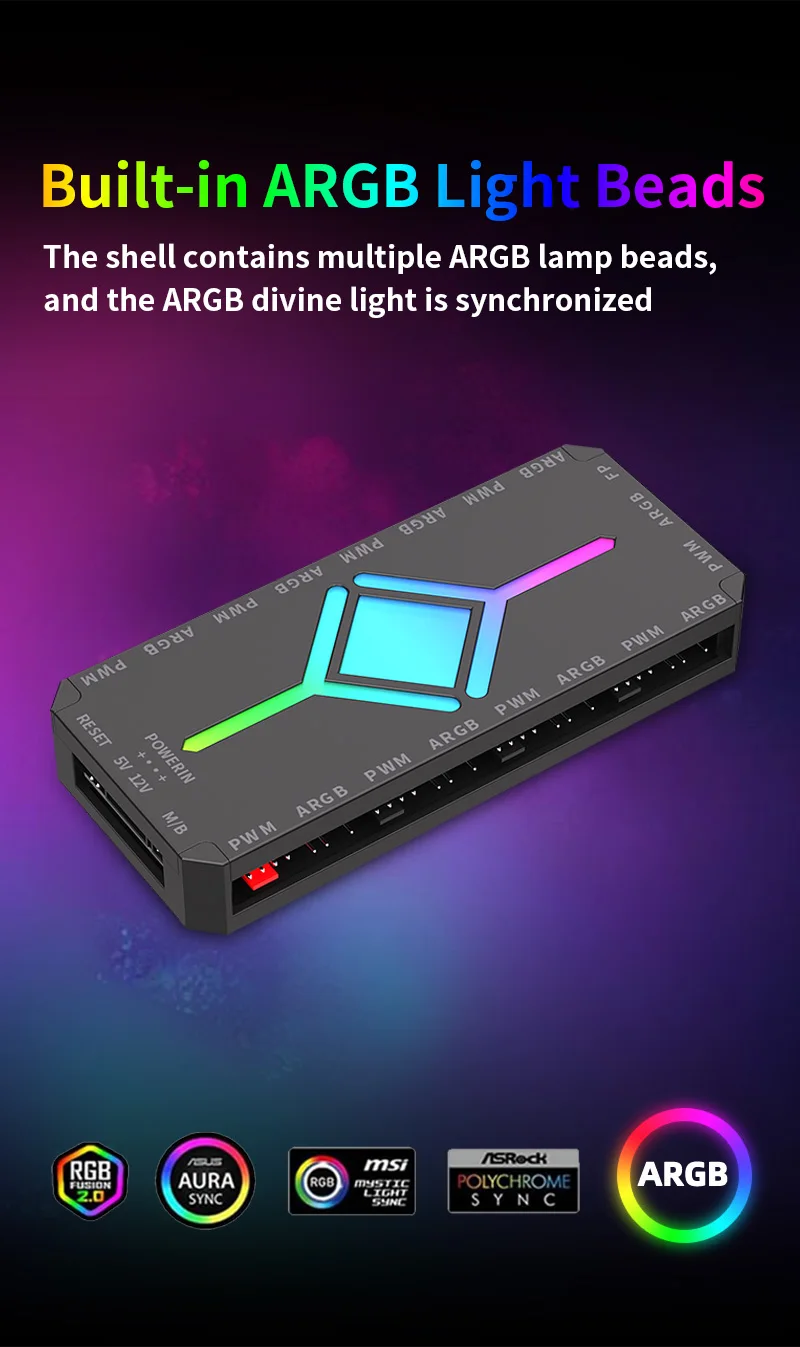 Controlador de ventilador de chasis Coolcirc ARGB, divisor de 1 a 9 puertos, concentrador de ventilador de refrigeración ARGB y PWM alimentado por SATA con Control remoto para carcasa de PC