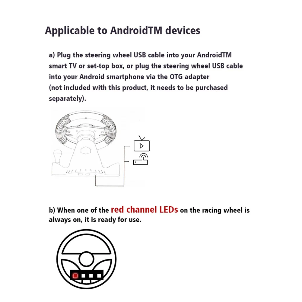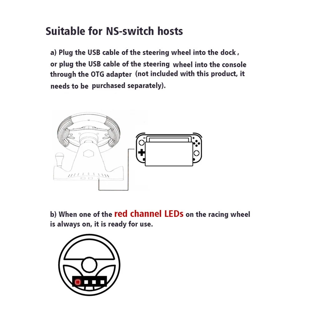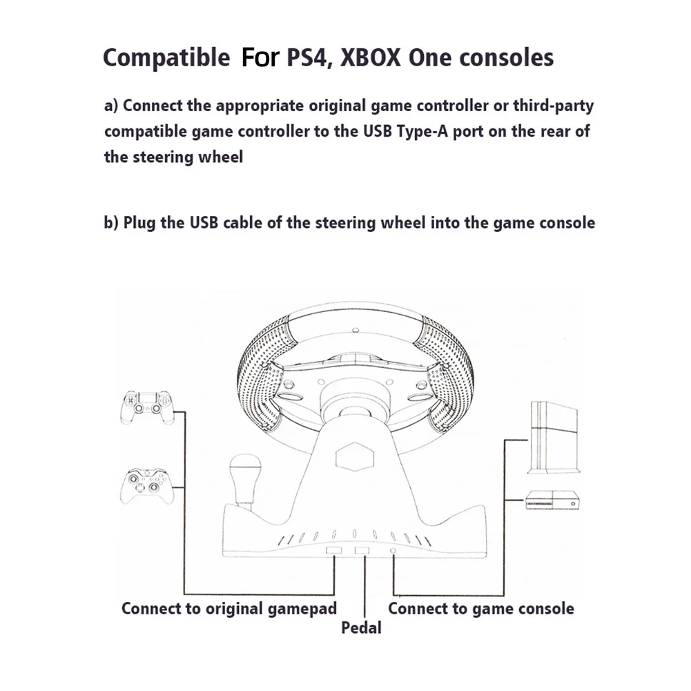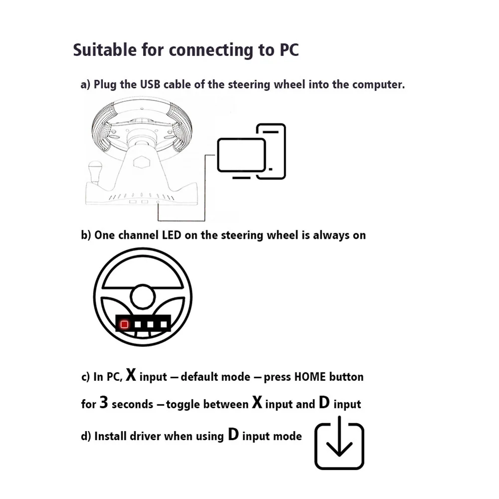 5. Instructions: The included instructions guide you through the simple process of setting up and connecting the racing wheel to different devices. Whether you're connecting to for PC/ PS3/ for Nintendo for Switch/Android device/ PS4/ Xbox One, the step-by-step instructions ensure you can start racing in no time.