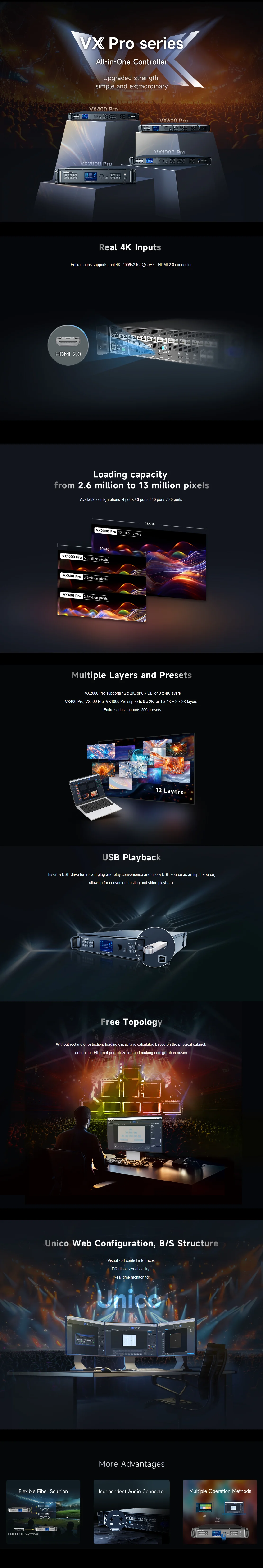 Controlador de vídeo NovaStar VX400 Pro 4K HD 4 puertos Ethernet 26 M píxeles reproducción USB de baja latencia CE FCC