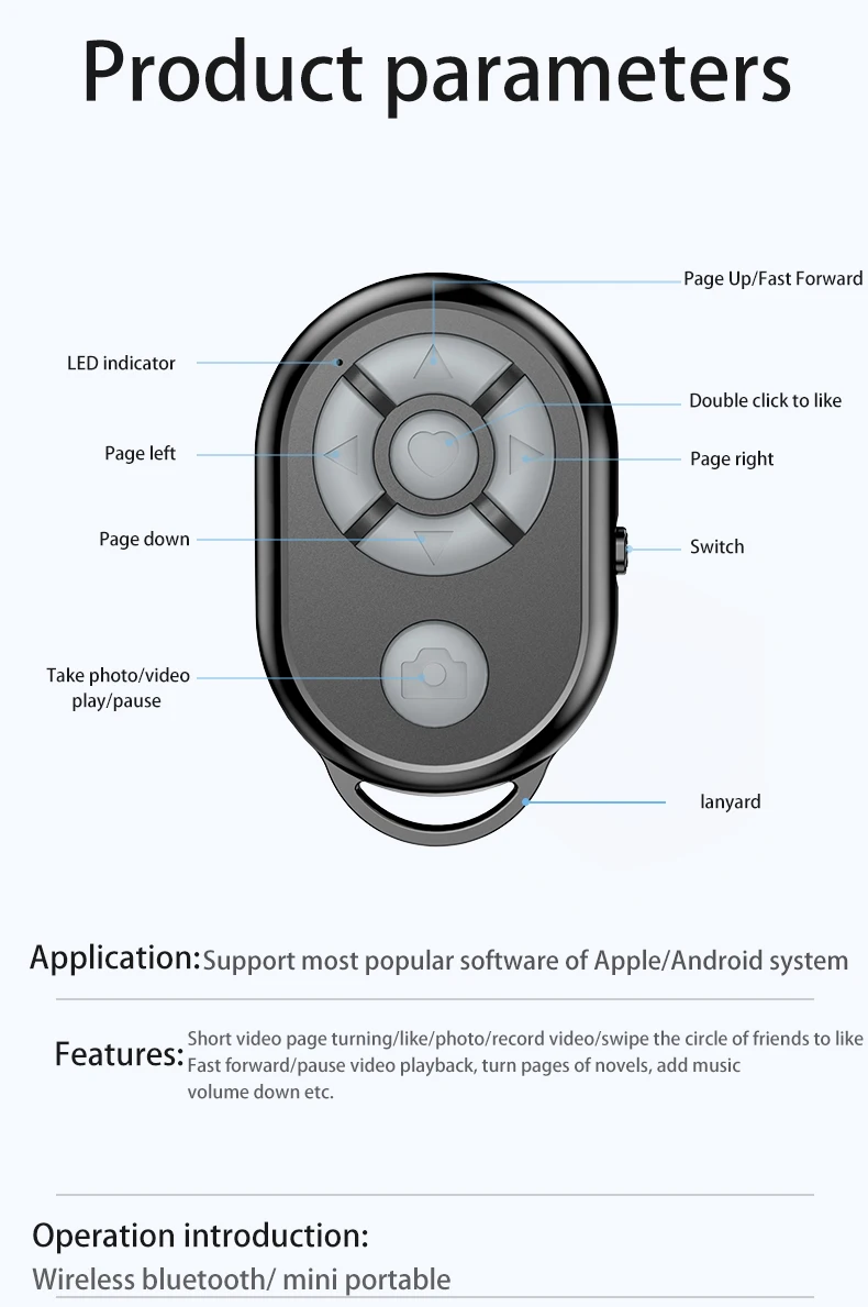 Comprar Controlador de vídeo de cámara remota Bluetooth para iPhone, Android, teléfono móvil, Control remoto Universal para giro de página de película Tiktok