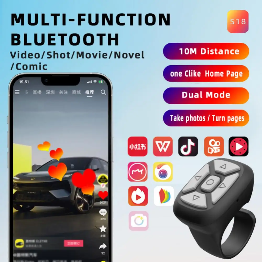 Controlador de vídeo compatible con Bluetooth, dispositivo de volteo de página para vídeo corto, controlador de anillo de Control remoto para teléfono móvil