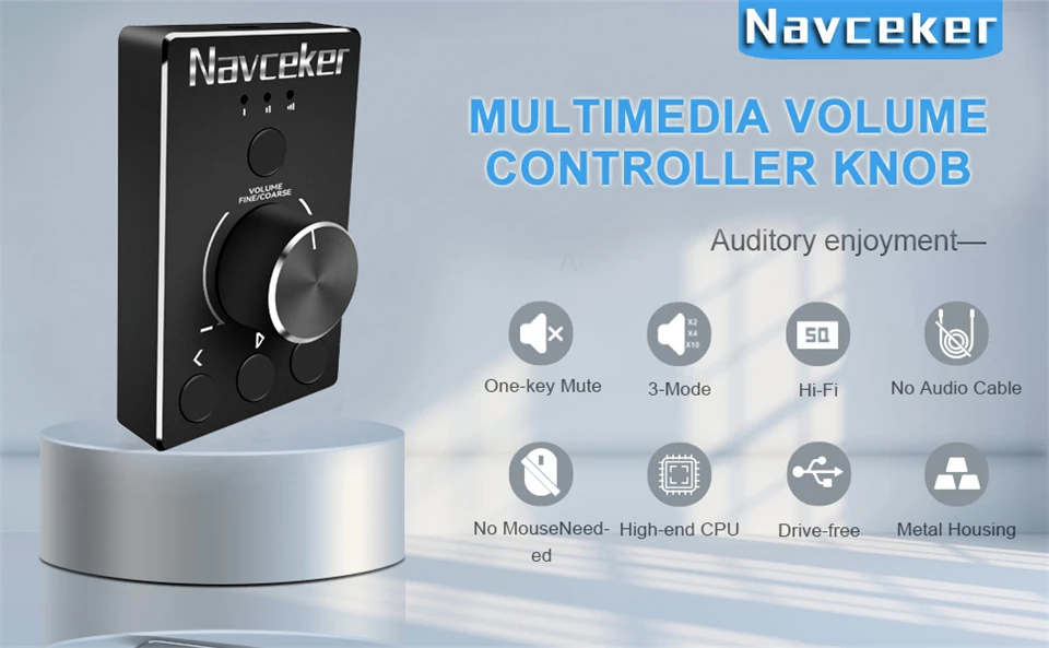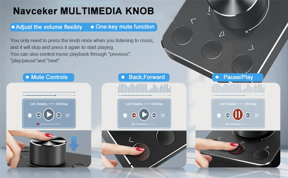 Maravillosa experiencia de uso: gira la perilla multimedia para ajustar el volumen. Con la función de silencio de una tecla, simplemente presione la perilla cuando esté escuchando música, la música se detendrá y comenzará a reproducirse si presiona la perilla nuevamente.
