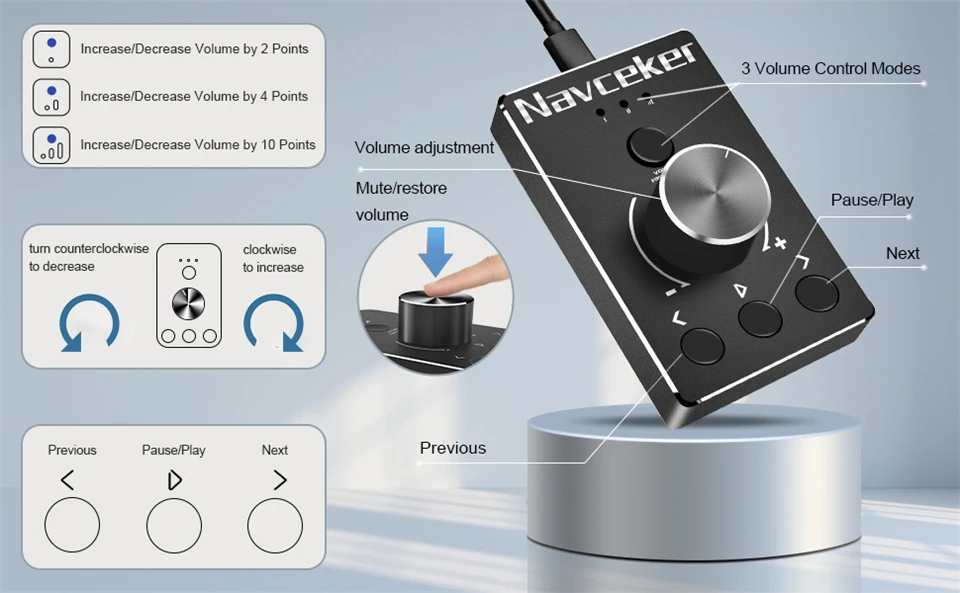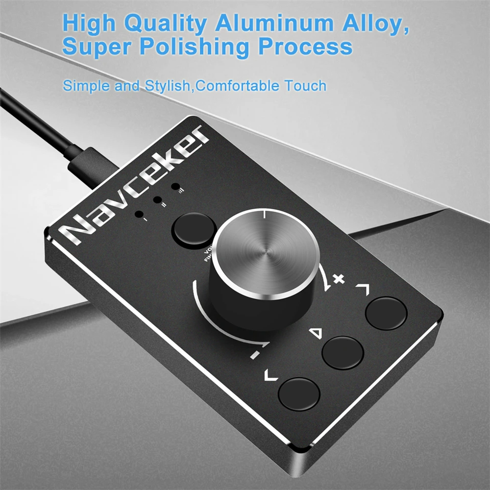 Sin controlador: es compatible con la perilla de control de volumen Navceker Win10/8/7/Mac, una vez que lo insertes en tu ordenador, comenzará a funcionar. Plug and play, no requiere controlador, puede ajustar directamente el volumen girando la perilla.