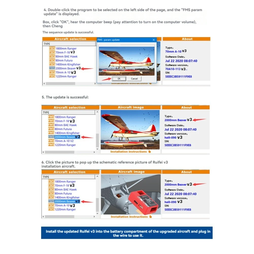 TA-Para FMS Reflex V3 controlador de vuelo estabilizador de giroscopio para aviones FMS RC controlador de vuelo mejorado