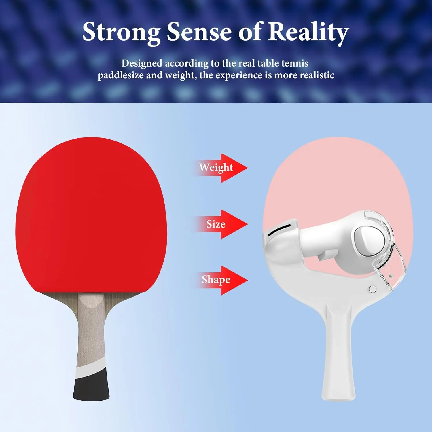Forma altamente realista para controladores Quest 3: simule una paleta de tenis Tabble real y mejore su experiencia de juego de realidad virtual.