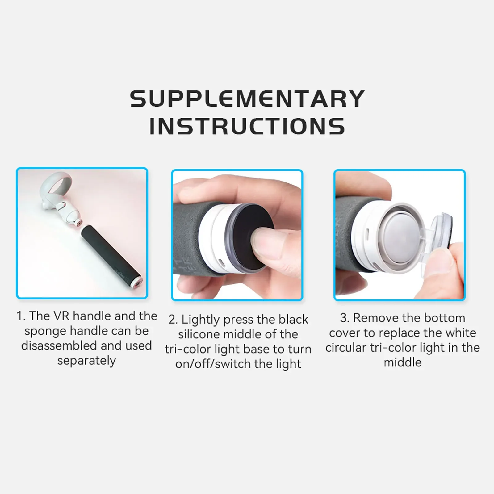 【Mango de extensión de 20 cm】Cada controlador agrega un mango extendido de 20cm, una sensación de agarre analógico más realista, adecuado para juegos como Beat saber, VR pinpong, etc. Hay diferentes patrones de color en las dos asas de expansión, fáciles de distinguir entre los controladores izquierdo y derecho.