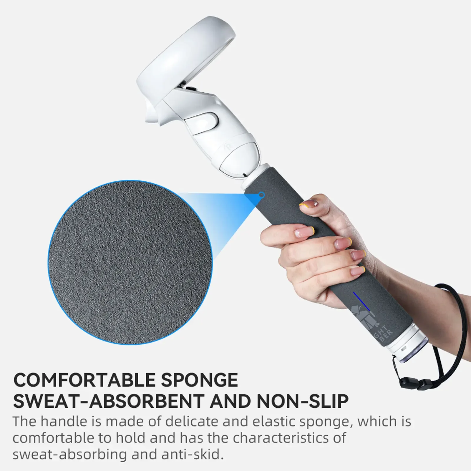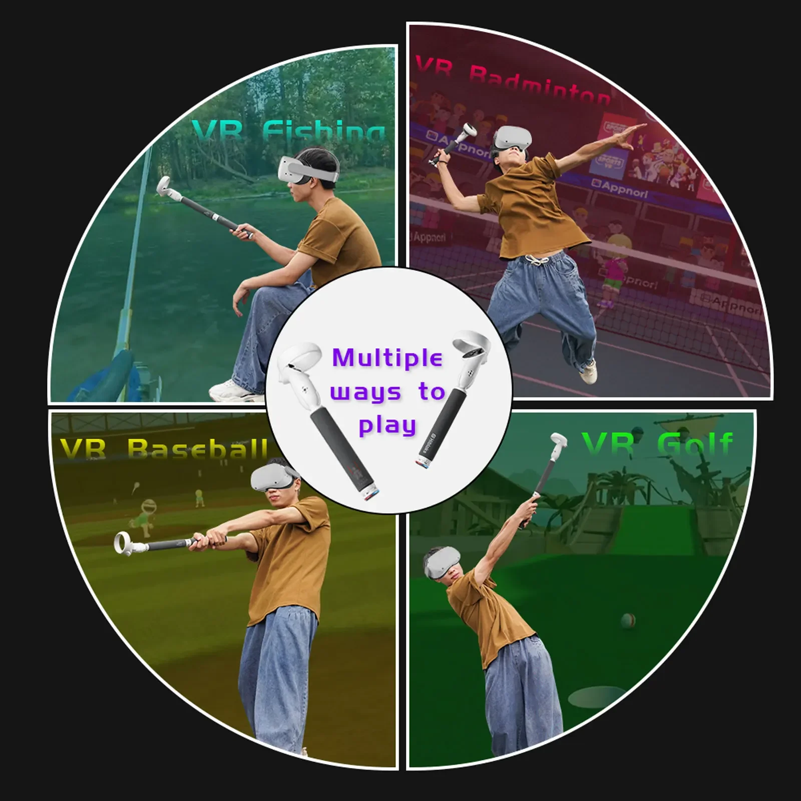 【Mango 2 en 1 】El extremo del mango es desmontable, desenrosque para combinar los dos mangos en un palo de 40cm con un conector, simula sostener un palo largo, más adecuado para VR Golf/béisbol/pesca, etc.