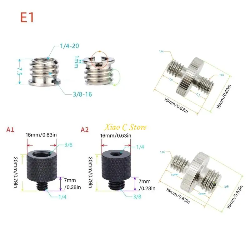 Características:OOTDTYEste juego de adaptadores de tornillo para trípode de 6 piezas garantiza cámaras universales para DSLR/sin espejo, cámaras de acción, luces LED y equipos de transmisión a través de una construcción de aleación de aluminio/acero diseñada con precisión para una durabilidad a prueba de herrumbre.