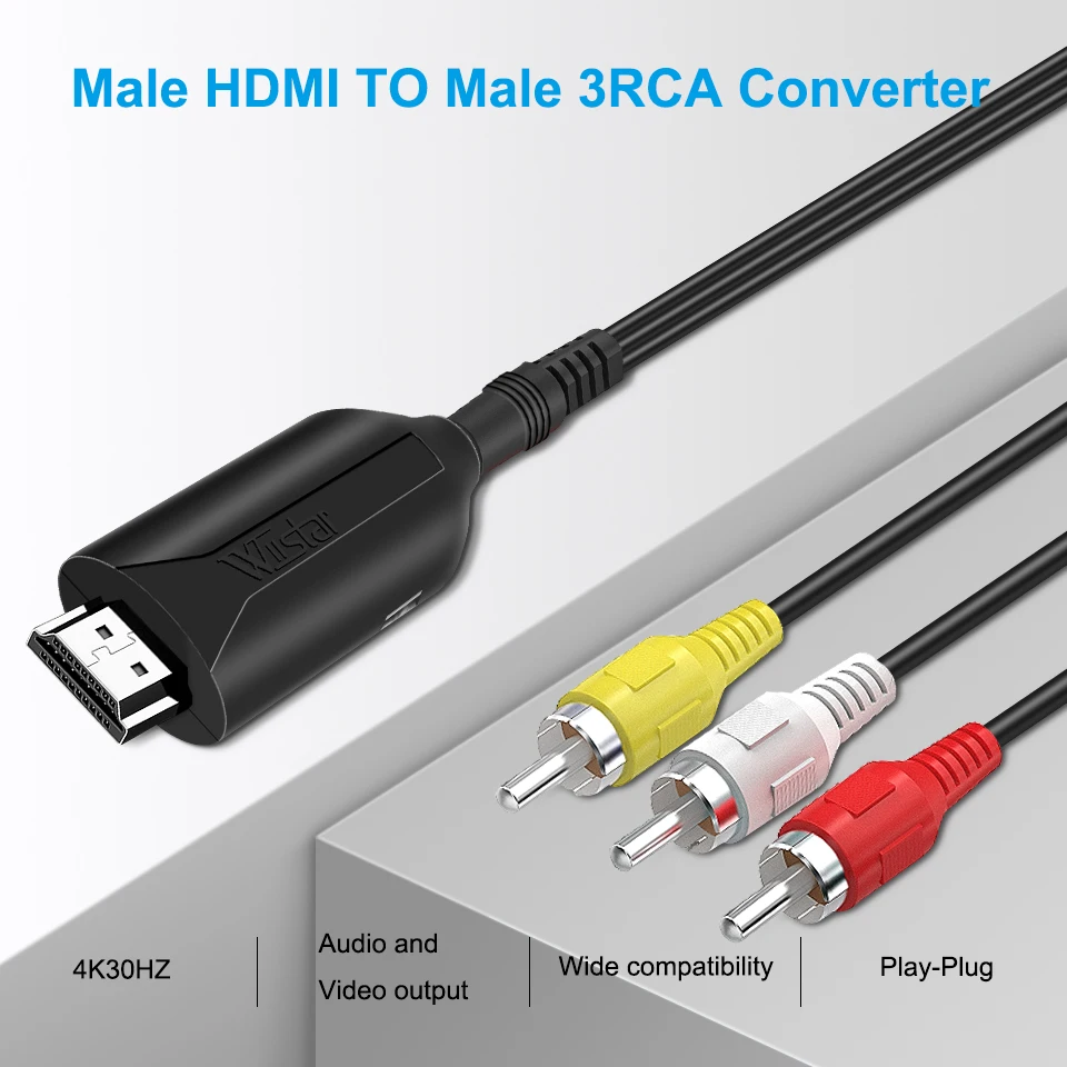 Convierte la señal digital a analógica.(HDMI en AV).Le permite conectar dispositivos modernos a televisores antiguos, otros dispositivos con solo una entrada compuesta... No es necesariocable AV y HDMI adicional