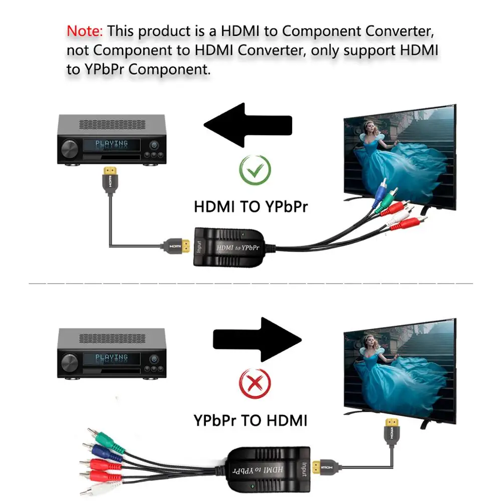 Convertidor de HDMI a escalador YPBPR que convertirá la señal de vídeo HDMI en señales YPBPR y señales de audio estéreo FL/FR. Para ayudar al usuario a obtener la señal de vídeo YPBPR de la señal HDMI. Así que puede reproducir en TVBOX,VHS,VCR, grabadoras de DVD, etc. y es compatible con la máquina con puerto YPBPR.