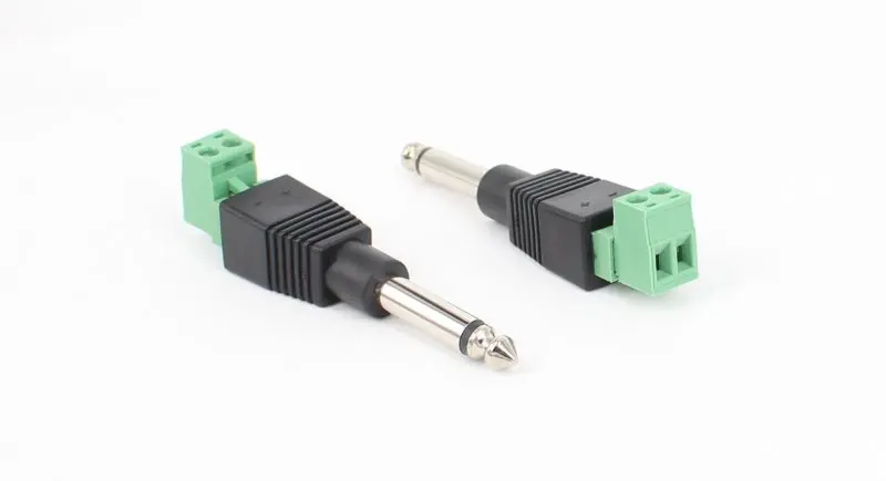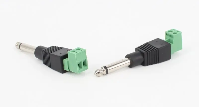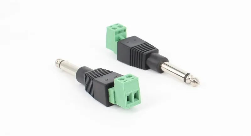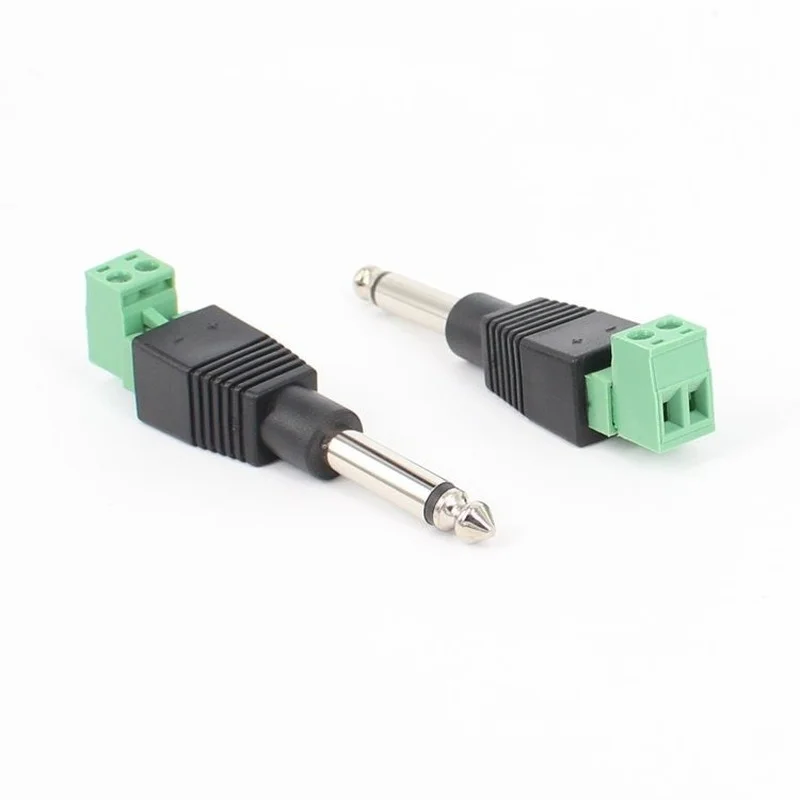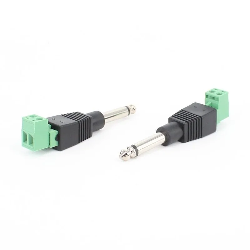 Comprar Convertidor Adaptador de Audio sin soldadura, 2 unids/lote, 6,35mm, conector macho Mono a 2 terminales de tornillo