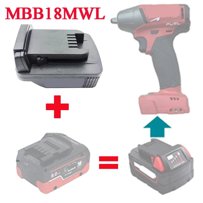 Convertidor adaptador de batería MBB18MWL para batería de iones de litio Metabo 18V LiHD a Milwaukee para uso de herramientas eléctricas con batería de litio M18