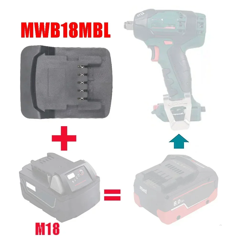 Convertidor adaptador de batería MWB18MBL para batería de iones de litio Milwaukee de 18V, conversión a herramientas eléctricas Metabo, batería de litio de 18V