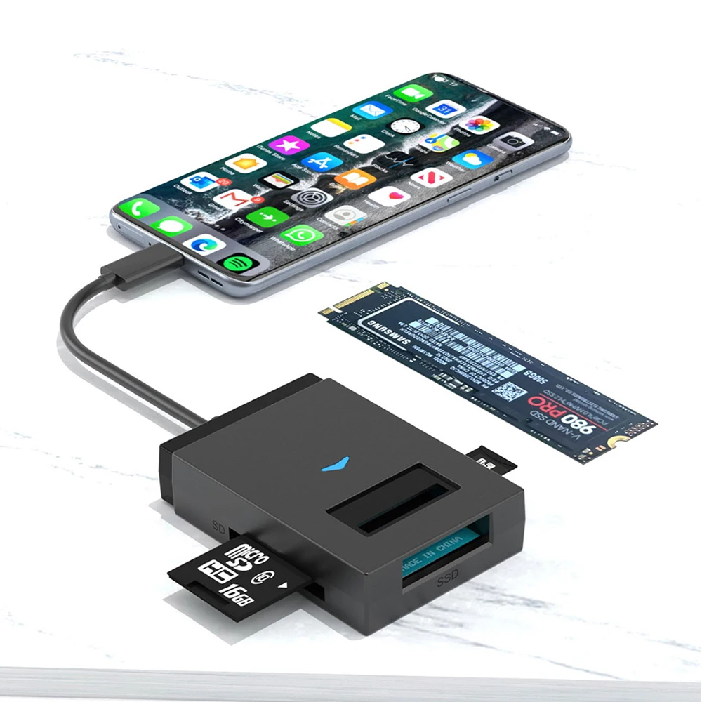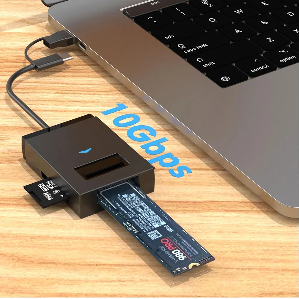 Comprar Convertidor adaptador de disco duro USB 3,1 a M.2 NVMe NGFF SSD, carcasa externa de 10Gbps para lector de tarjetas SD TF tipo A + C para llave M/M + B