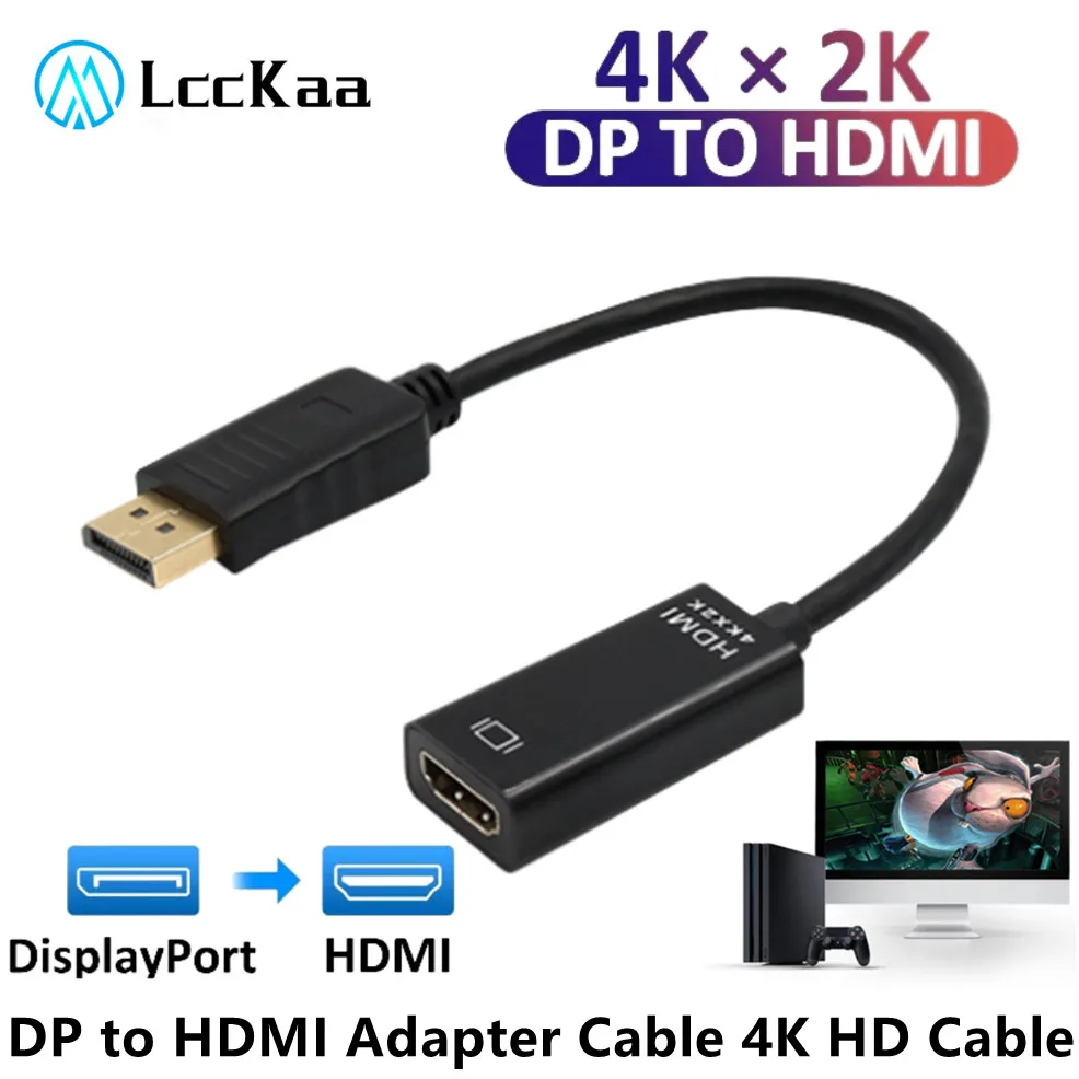Comprar Convertidor de adaptador DP a HDMI, Cable adaptador de Audio y vídeo Compatible con HDMI, 4K, 1080P, macho a hembra, para PC, TV y portátil