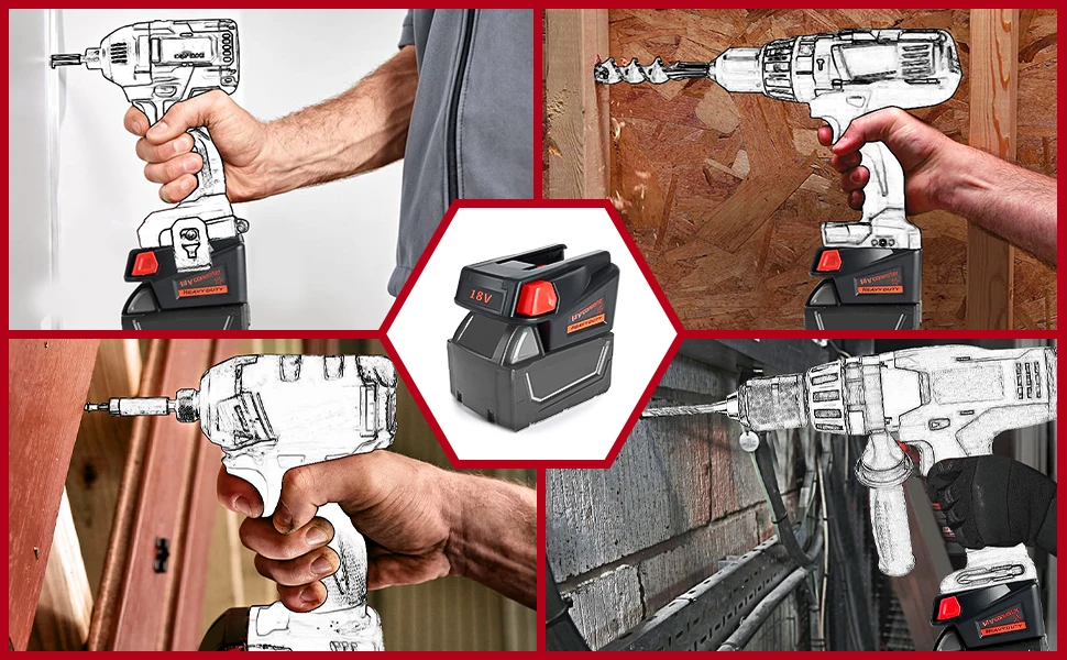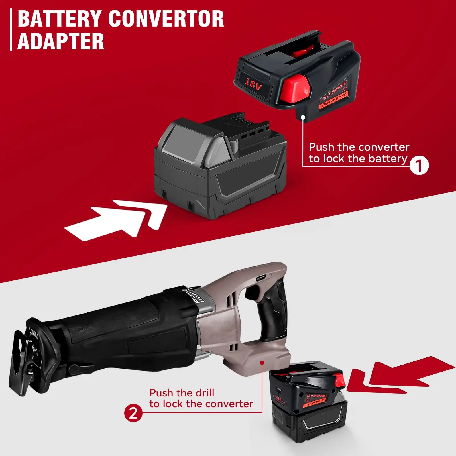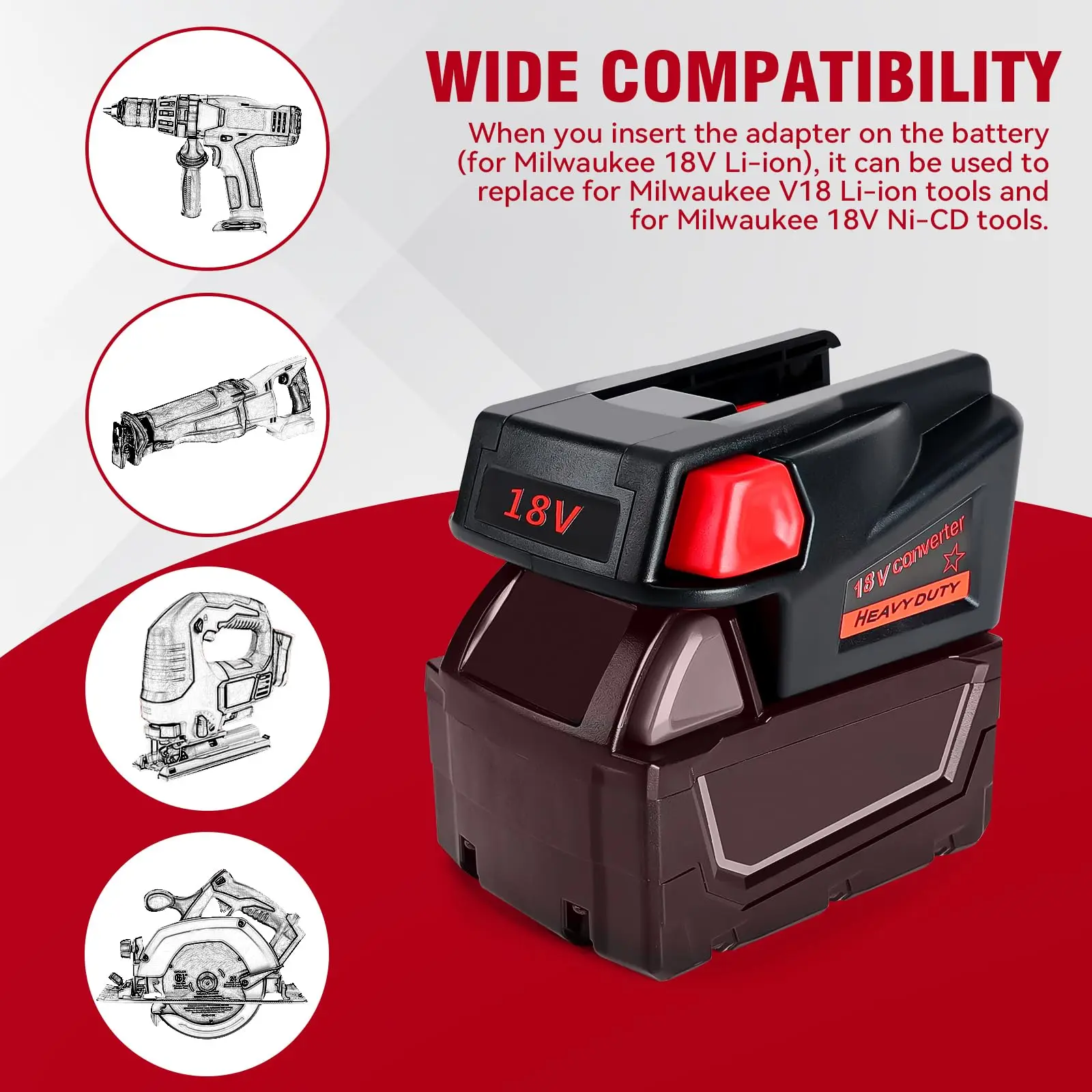 2. Este adaptador de 18 V es compatible con la mayoría de las herramientas Milwaukee de 18 V NI-CD, para herramientas de iones de litio Milwaukee de 18 V.