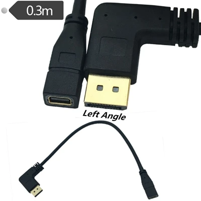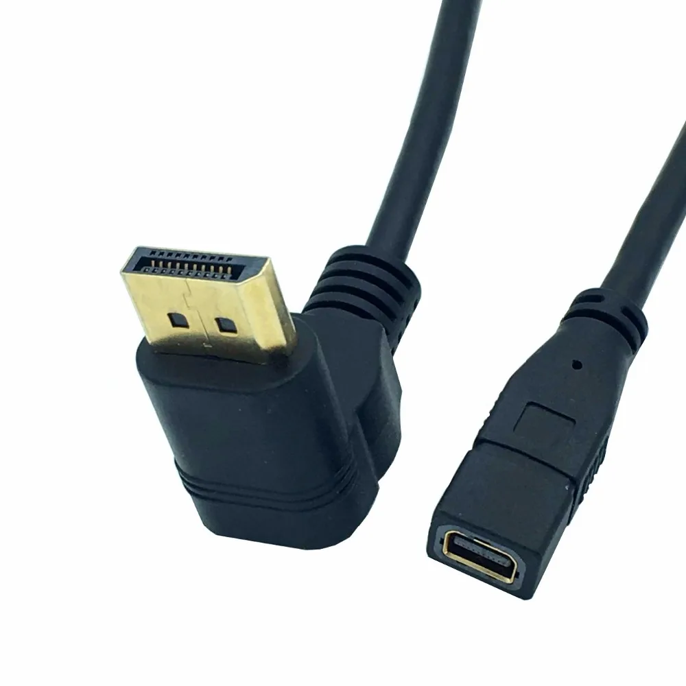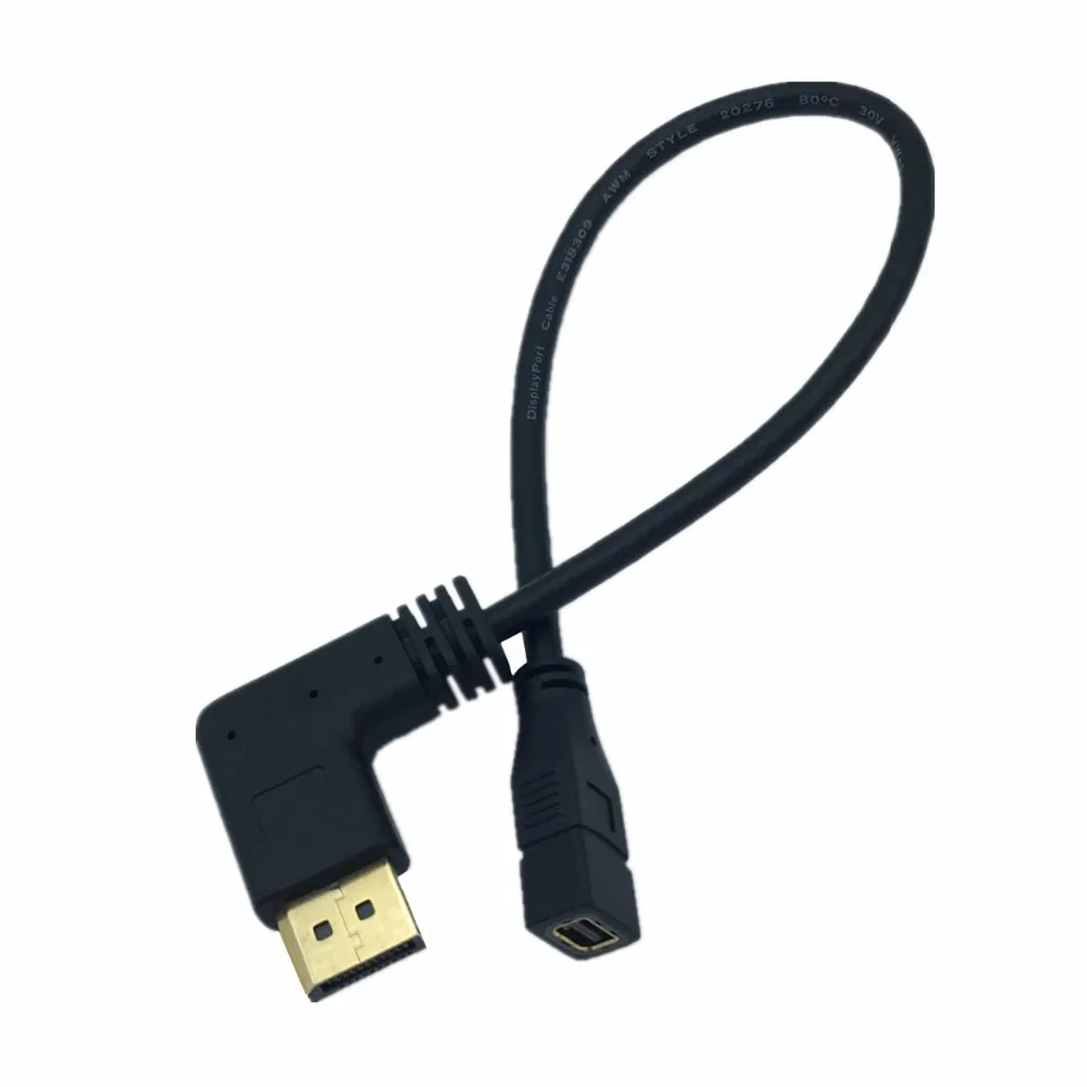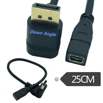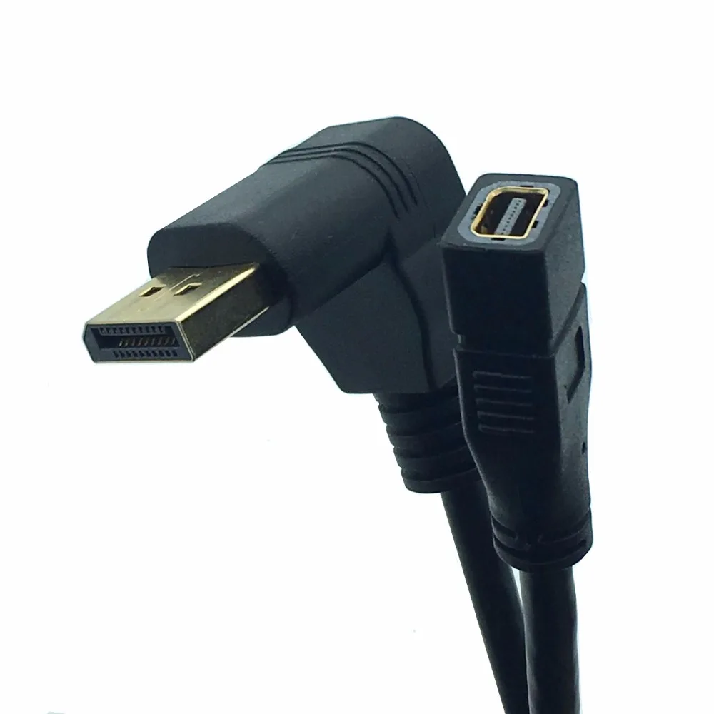DisplayPort macho a Mini DisplayPort hembra TB 90 grados hacia arriba y hacia abajo y cable de extensión DP en ángulo izquierdo y derecho 2K * 4K @ 60Hz