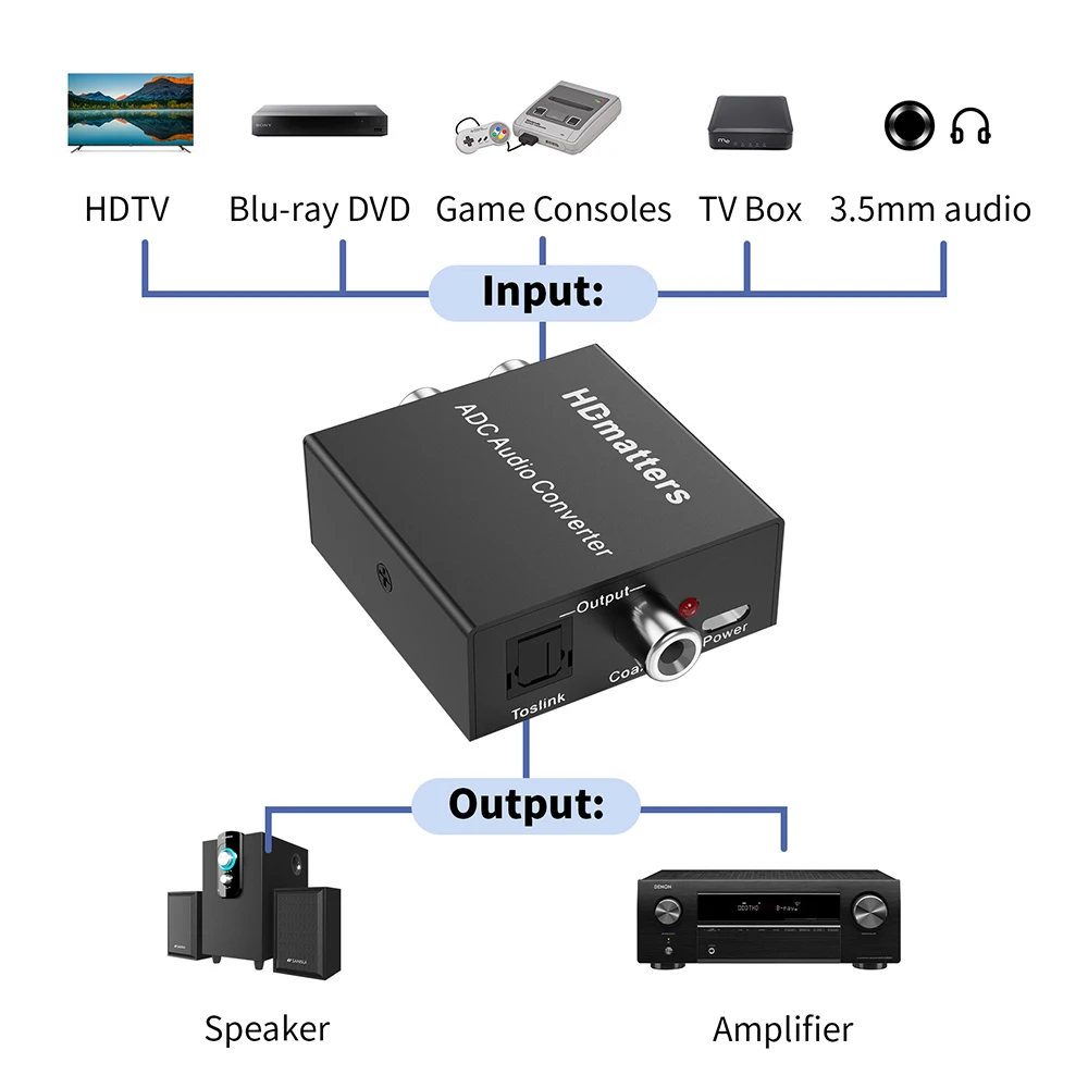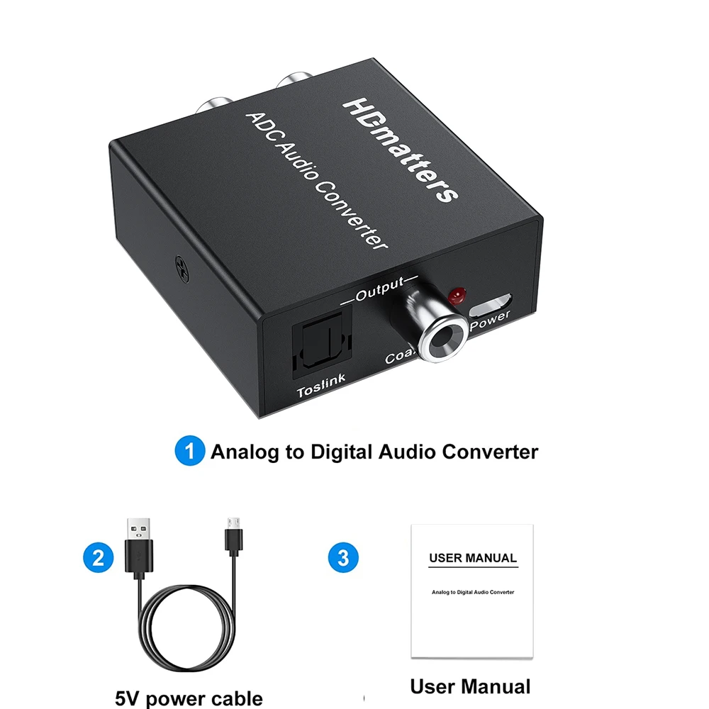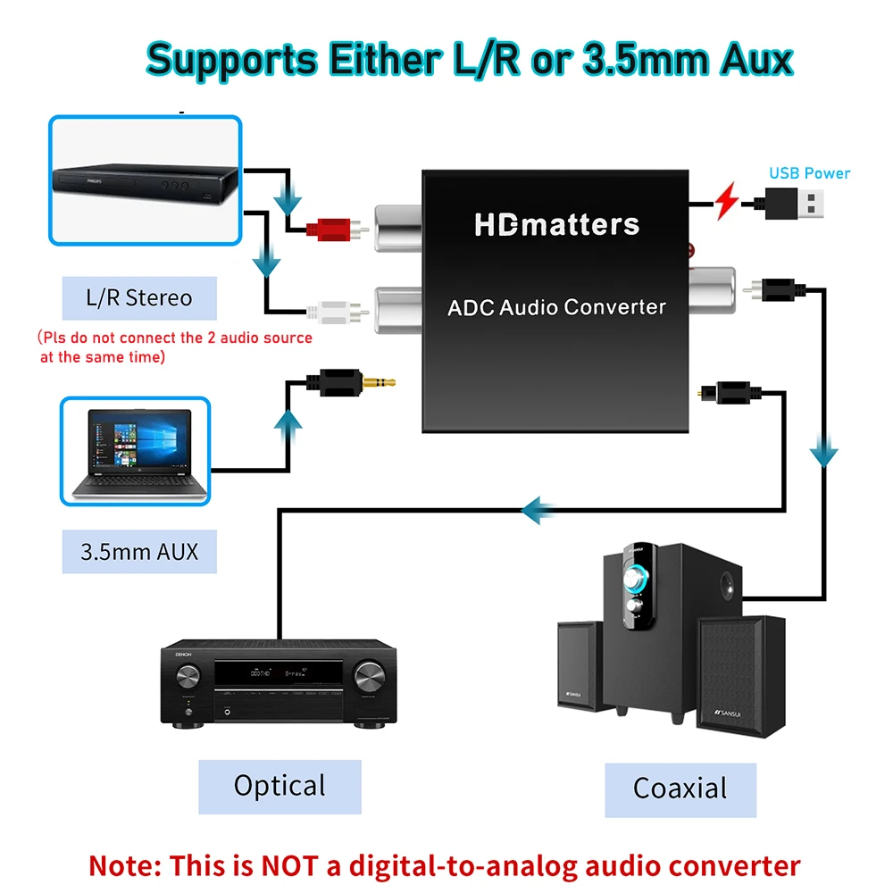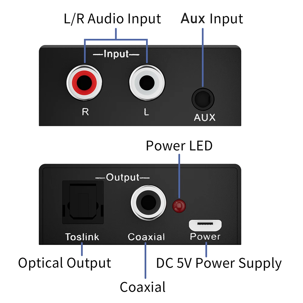 Comprar Convertidor de Audio analógico a Digital 3,5 MM Aux + L/R RCA a Toslink convertidor de audio Digital Coaxial Audio estéreo a Audio Digital