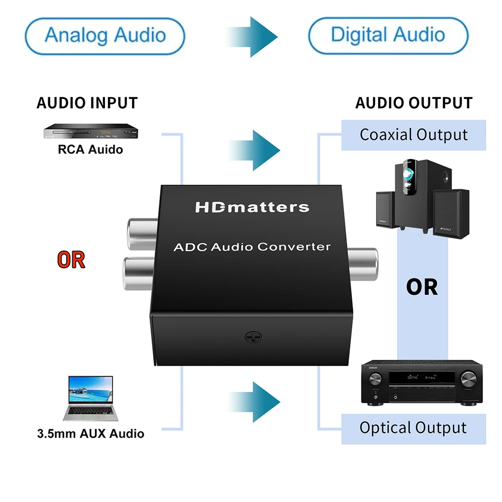2) El convertidor de audio de Anlog a Digital solo convierte los puertos físicos de audio. No puede mejorar la calidad del audio.
