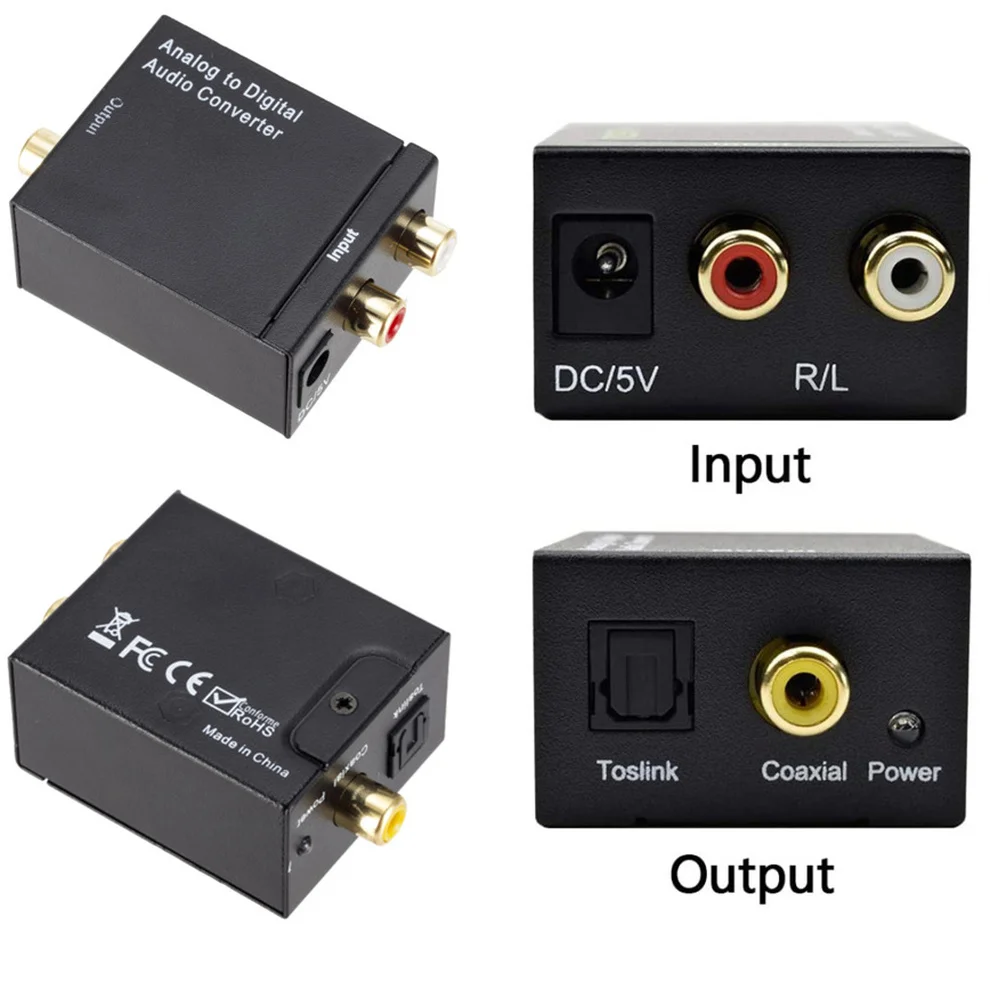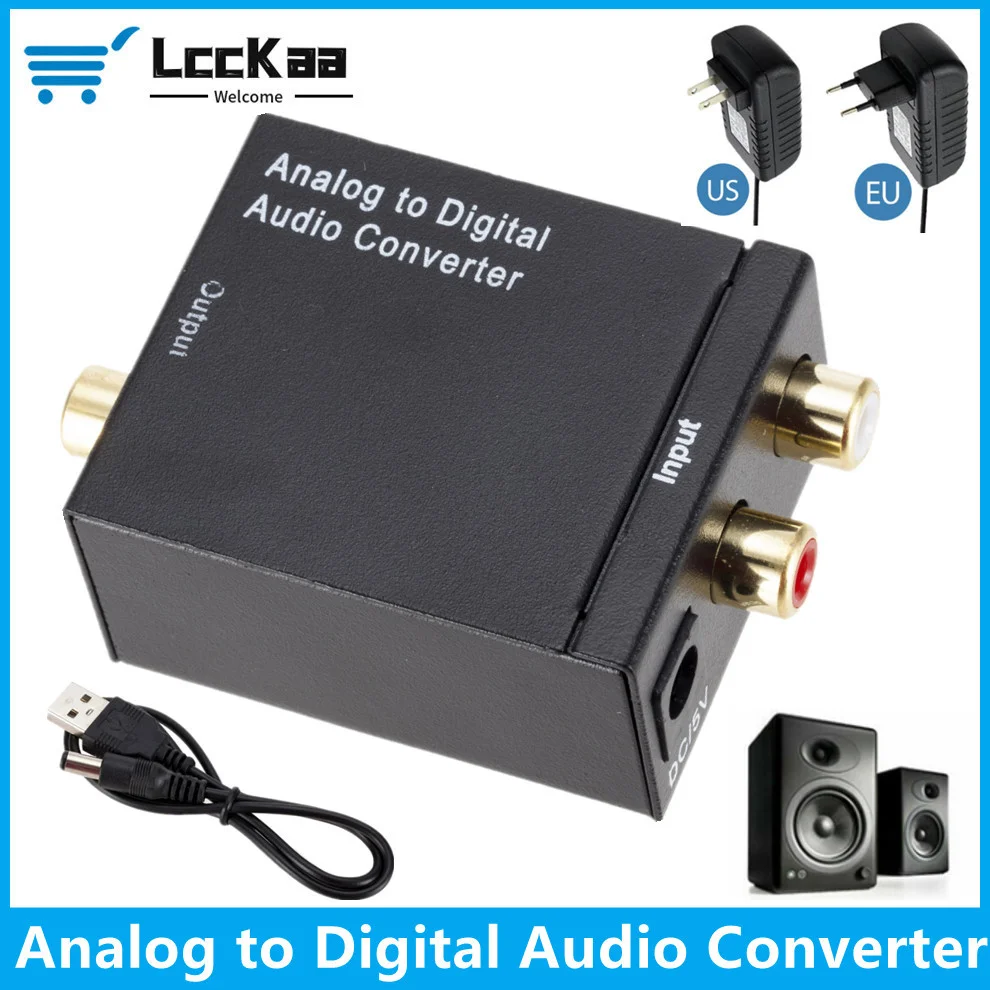 Comprar Convertidor de Audio analógico a Digital ADC, señal Coaxial de fibra analógica a óptica, ADC Spdif estéreo, conector de 3,5 MM, 2 decodificadores de amplificador RCA