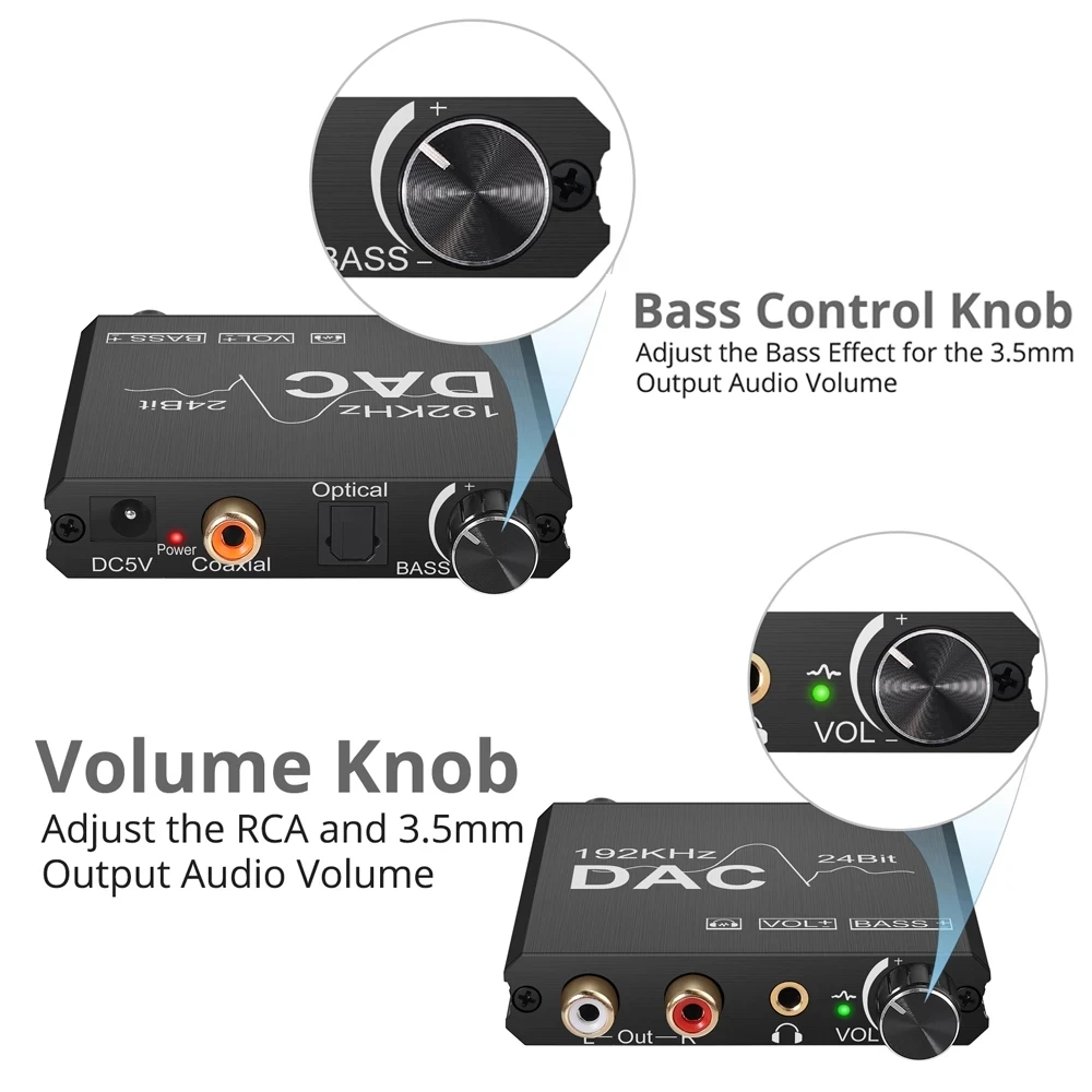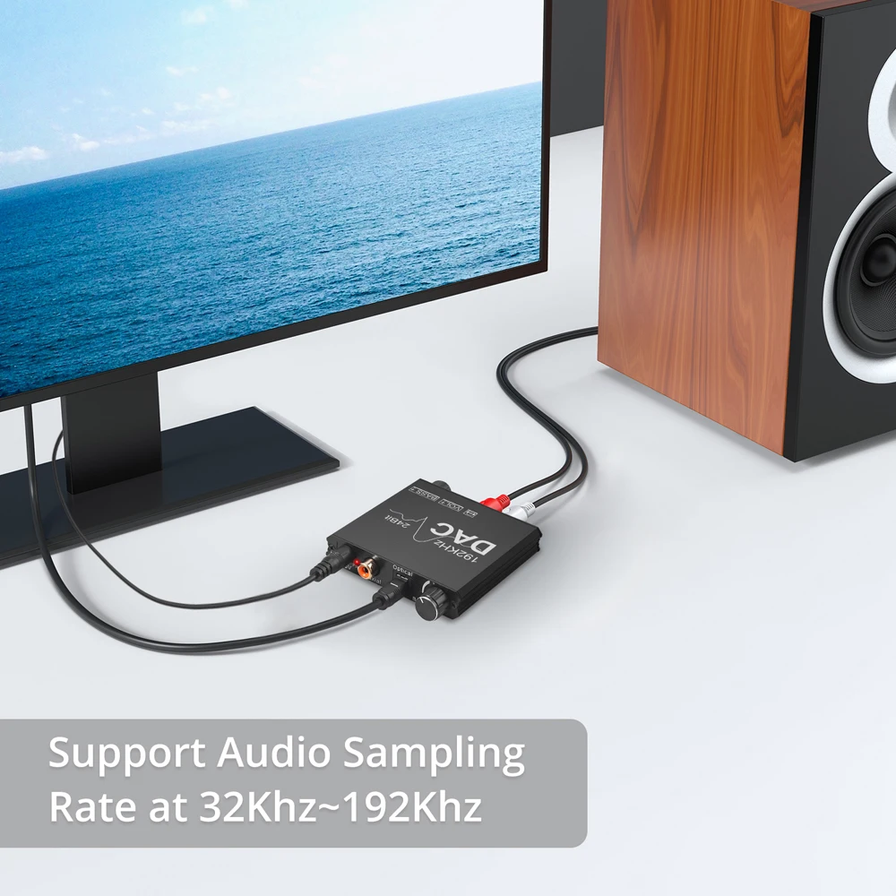 Convertidor de audio digital a analógico de 192KHz DAC Digital SPDIF óptico a analógico L/R RCA convertidor Toslink óptico a conector de 3,5mm