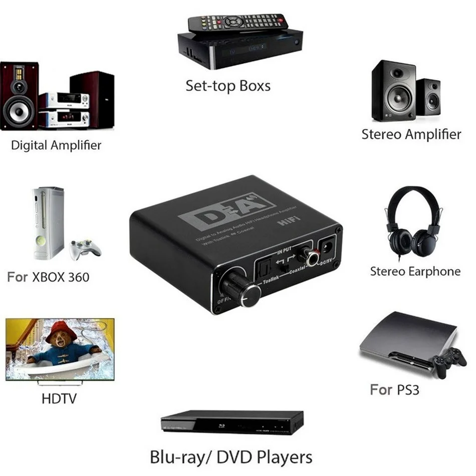 Comprar Convertidor de Audio Digital a analógico HIFI DAC, decodificador de 3,5mm, AUX, RCA, amplificador, adaptador Toslink, salida Coaxial óptica DAC de 24 bits