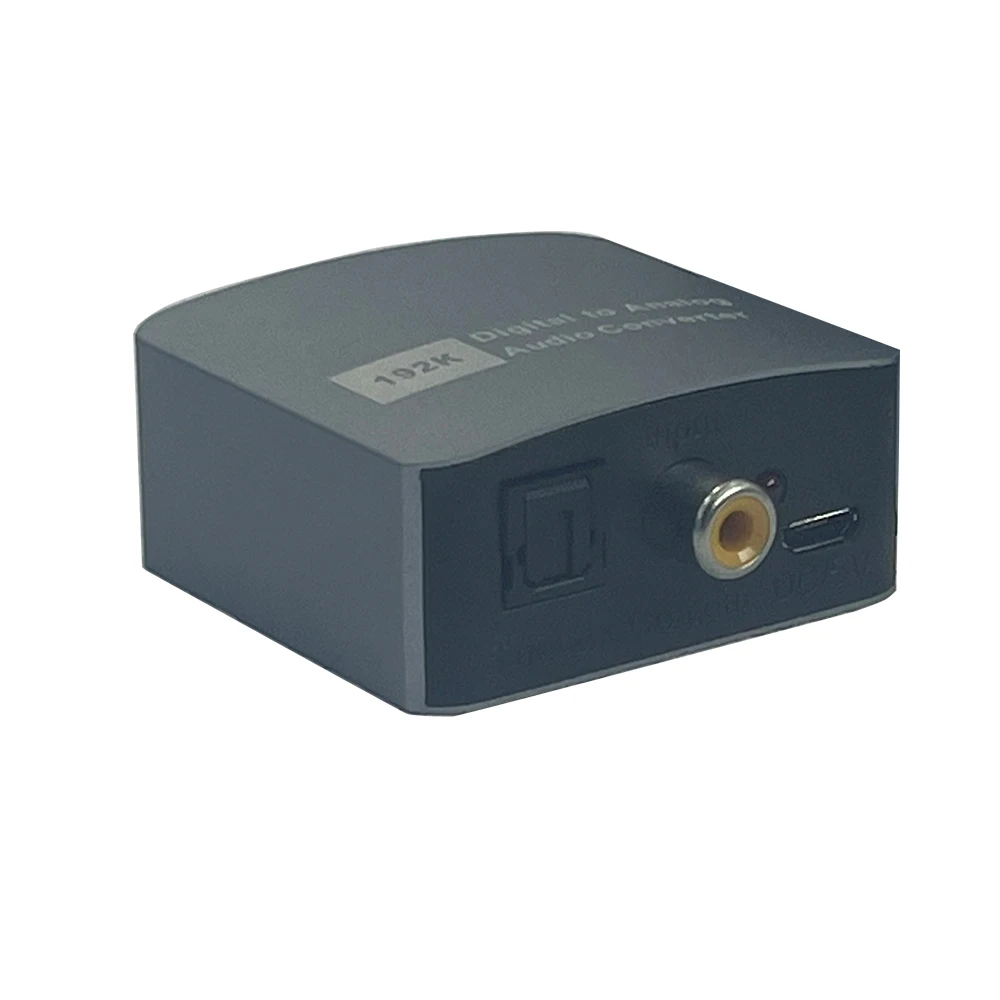 Convierte señales de audio estéreo Digitales Coaxiales u ópticas (Toslink) en audio estéreo analógico