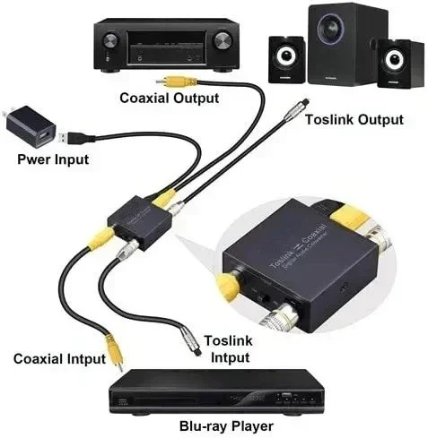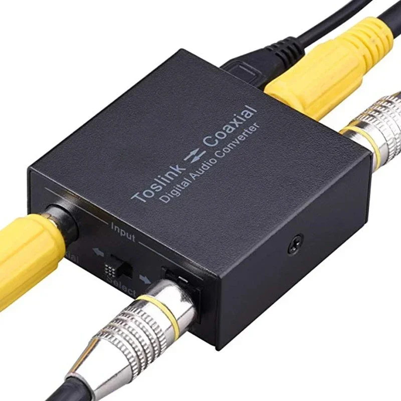 Convertidor de audio digital bidireccionalI. IntroducciónEl convertidor de audio digital bidireccional es un convertidor de audio coaxial/Toslink, compacto y práctico. Acepta la entrada de señal de audio SPDIF a través de cable coaxial o cable Toslink, y pasa la señal (tal cual) a sus puertos de salida coaxial y Toslink.II. CaracterísticasAdmite conversión bidireccional: coaxial a Toslink oToslink a coaxial.Seleccione una entrada de puertos de entrada coaxiales o Toslink, yEnvía la señal de audio SPDIF a los puertos de salida Coaxial y Toslink simultáneamente.Tamaño compacto y fácil de instalar.IV. EspecificacionesEntrada: 1 Conector RCA coaxial; 1 Toslink (fibra óptica)Salida: 1 x conector RCA coaxial; 1 x Toslink (fibra óptica)Dimensiones: 48mm x 48,5mm x 20mmTemperatura de funcionamiento: 0 °C ~ 40 °C / 2 °F ~ 104 °FTemperatura de almacenamiento: -20 °C ~ 60 °C / -4 °F ~ 140 °FHumedad relativa: 20 ~ 90% RH (sin condensación)