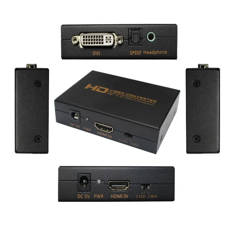1080P HD Video HDMI a DVI spdif Audio Converter Adapter Box para PS3,Blue ray DVD