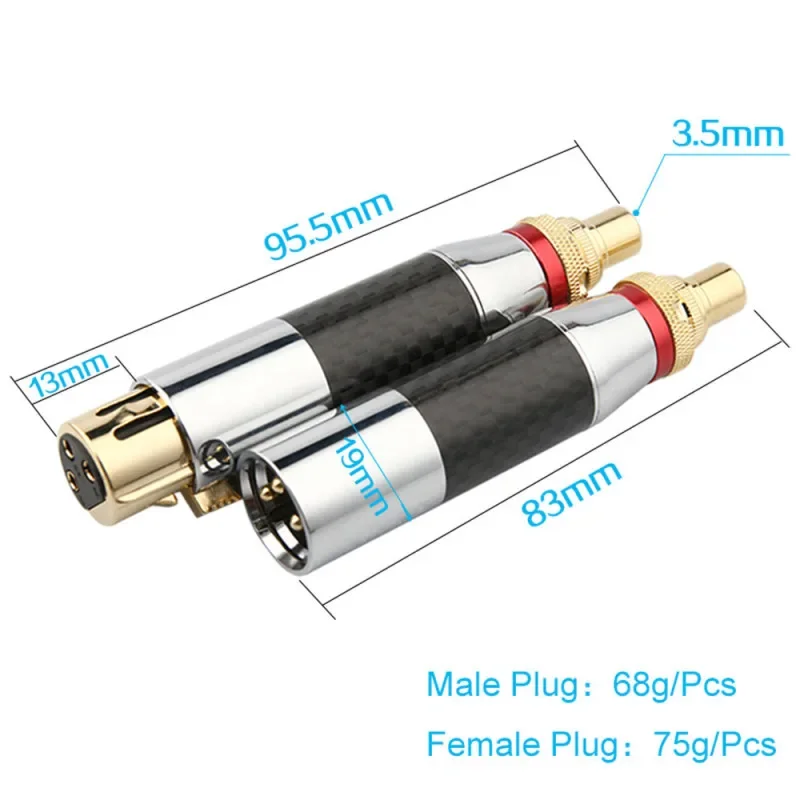 Comprar Convertidor de Audio XLR de 3 pines a Jack RCA, conectores macho y hembra dorados de fibra de carbono, amplificador de altavoces, adaptador de micrófono