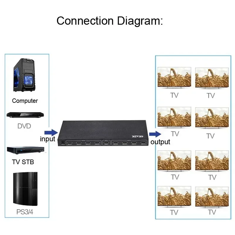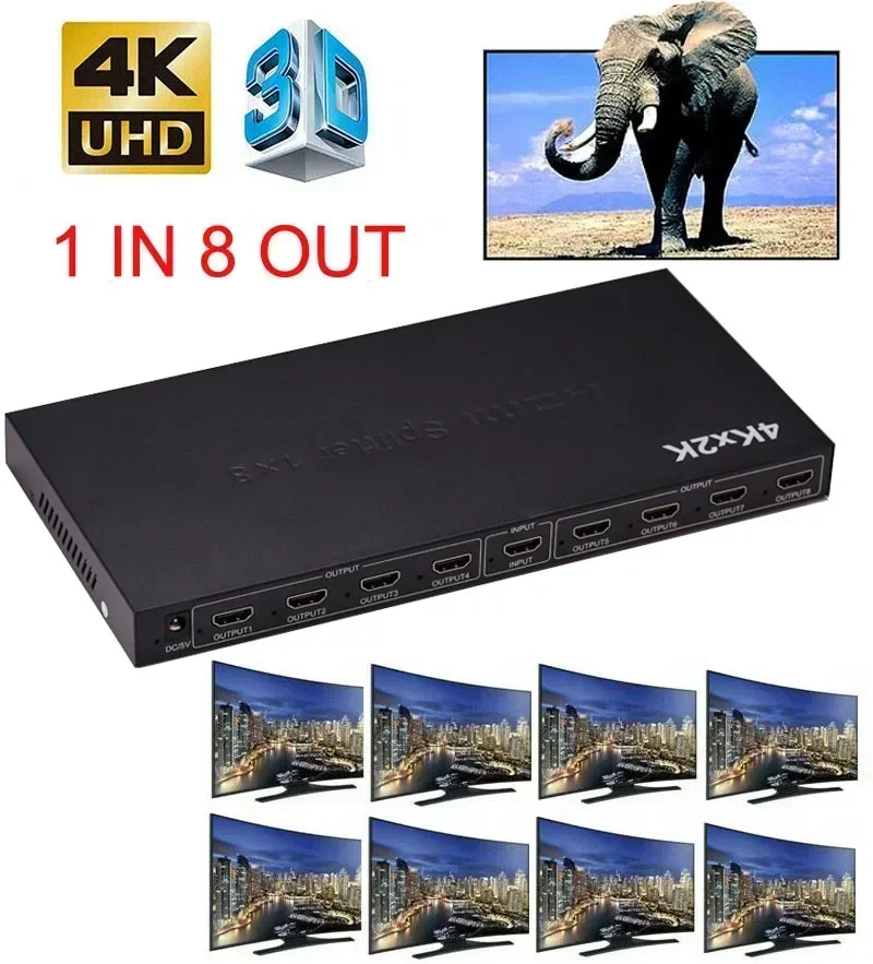 Comprar Convertidor de Audio y vídeo 4K 1 en 8, divisor HDMI 1x8, pantalla de 1080P para PS4, XBOX, DVD, ordenador portátil, PC a TV, monitores de 8 canales