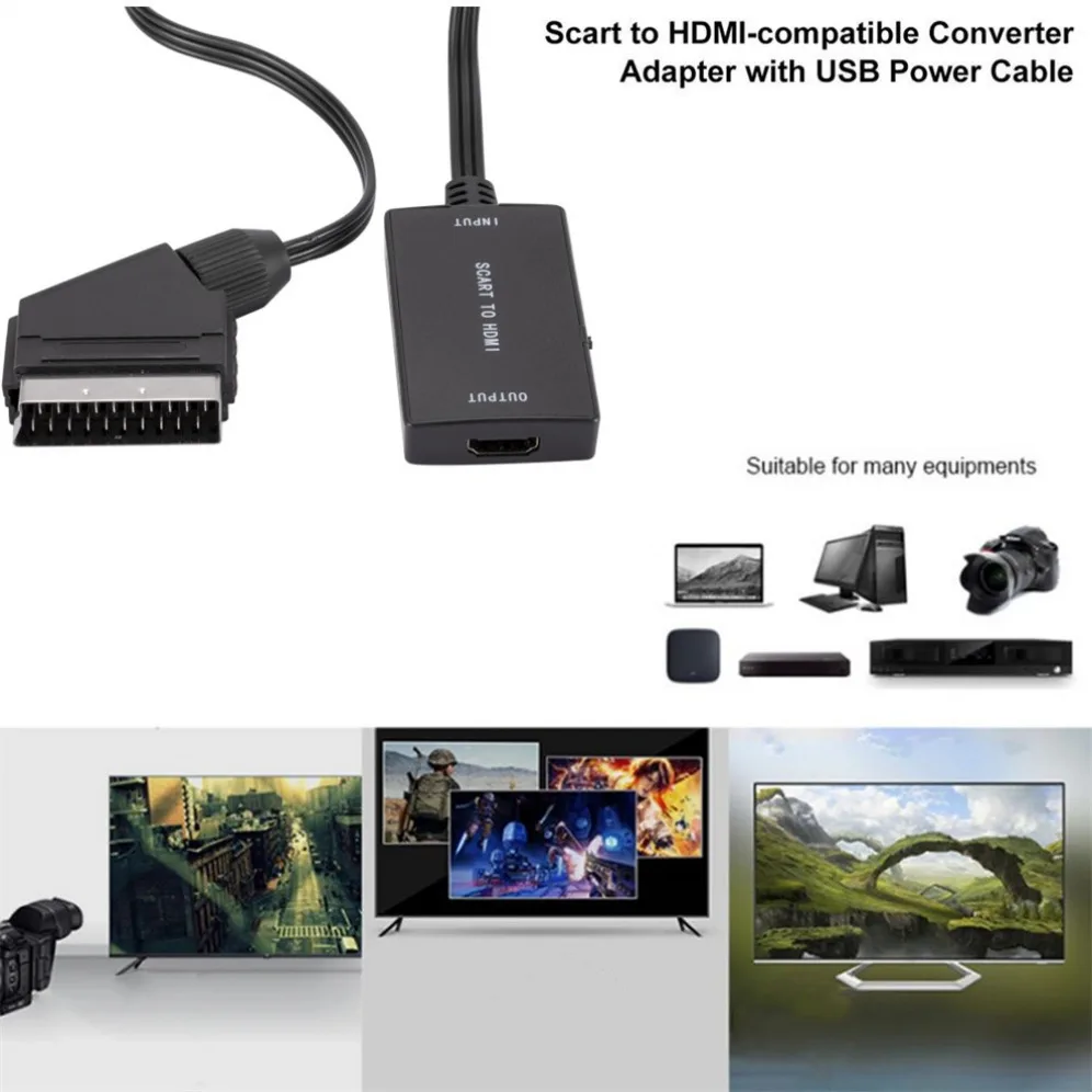 Comprar Convertidor de Audio y vídeo compatible con Grwibeou, SCART a HDMI, con Cable USB para HDTV Sky Box, DVD, señal de televisión, convertidor de lujo