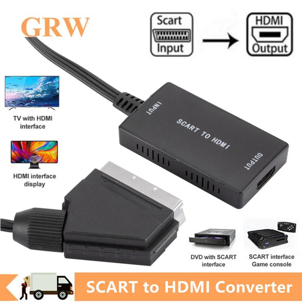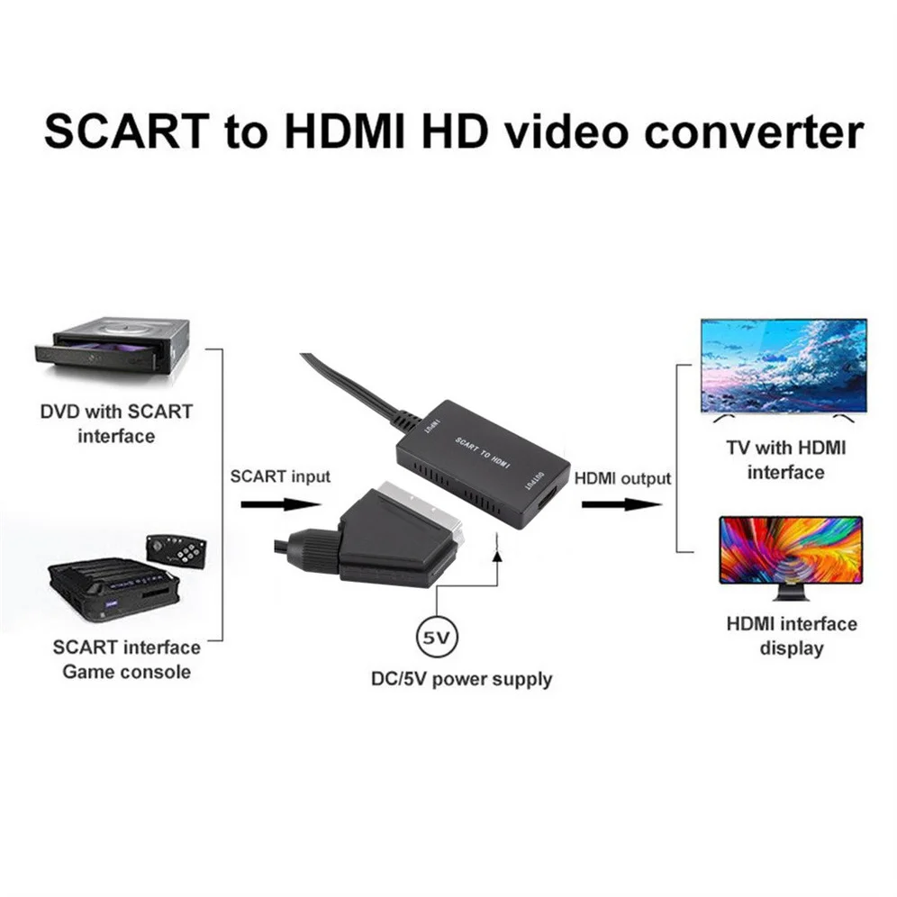 Comprar Convertidor de Audio y vídeo compatible con Grwibeou, SCART a HDMI, con Cable USB para HDTV Sky Box, DVD, señal de televisión, convertidor de lujo