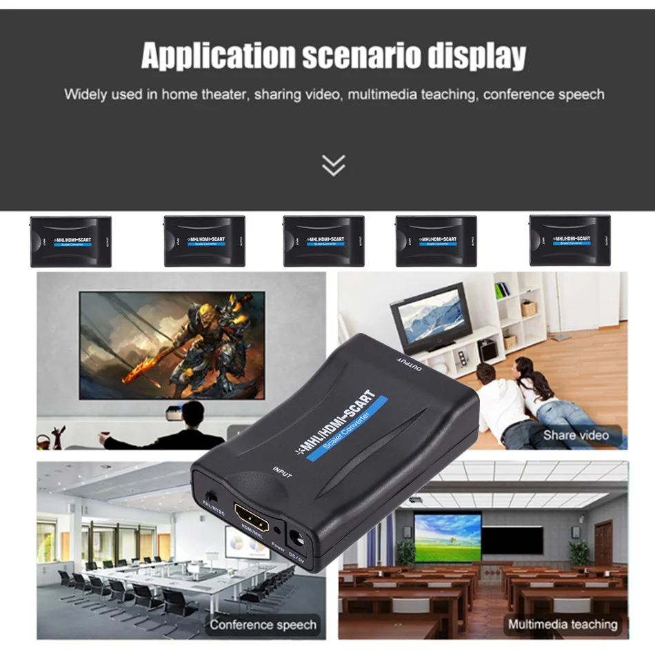 Comprar Convertidor de Audio y vídeo compatible con SCART, Cable USB para HDTV Sky Box, DVD, señal de televisión, convertidor exclusivo, 1080P