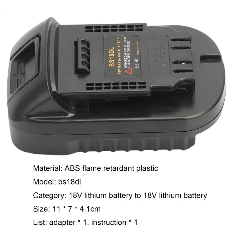 El paquete incluye: 1 Adaptador de conversión de batería BS18DL (batería no incluida).