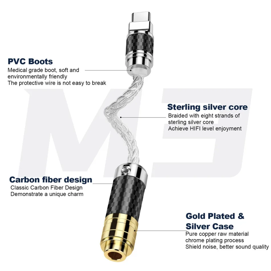 1. Nombre del producto: Hifi para iluminación tipo C a 2,5mm 3,5mm 4,4mm hembra Jack adaptador de auriculares USB C convertidor de Audio