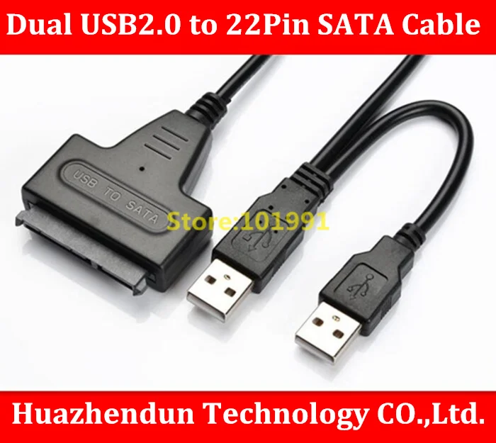 Comprar Convertidor de Cable Dual USB 2,0 a SATA de 22 pines para disco duro SATA de 2,5 pulgadas, 10 unids/lote, envío gratis, nuevo