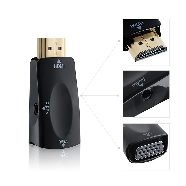 Comprar Convertidor de Cable HDM1-compatible a VGA HD 1080P, adaptador macho a hembra de 3,5mm, Conector de Audio para TV Box, PC, portátil, proyector de pantalla