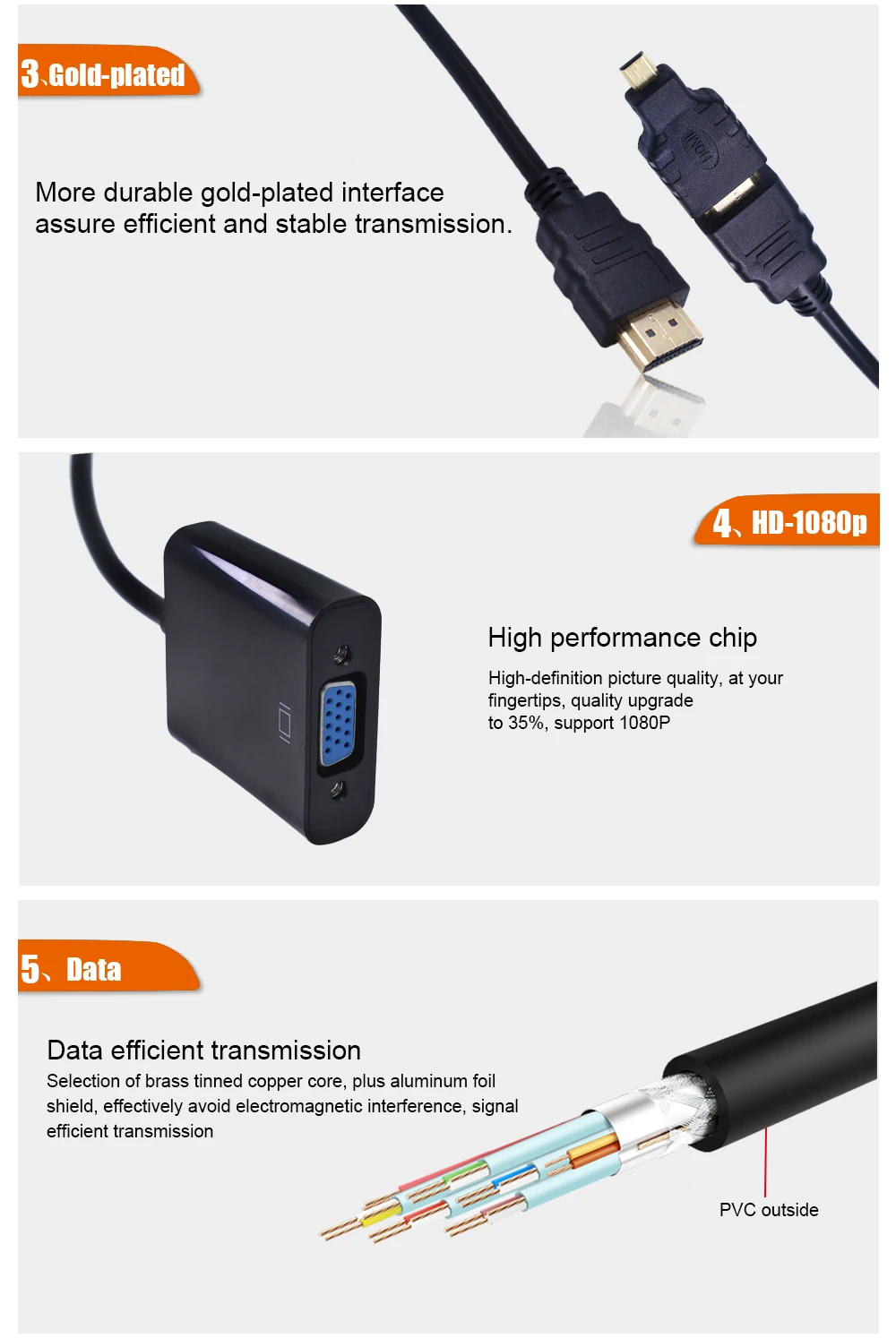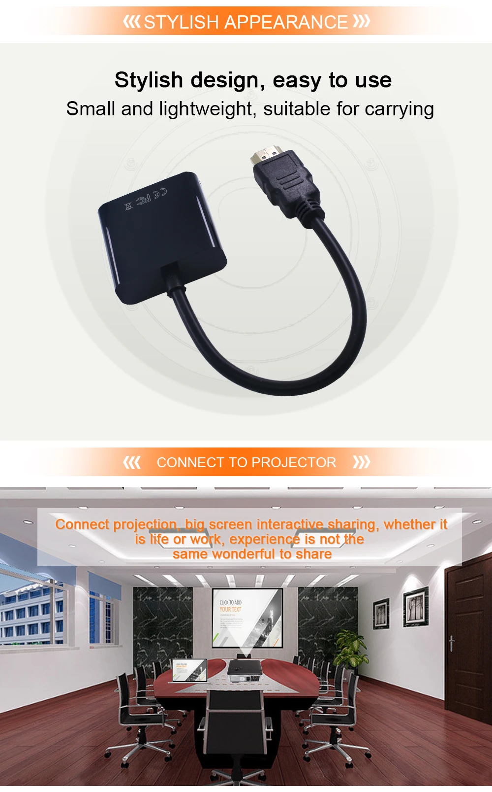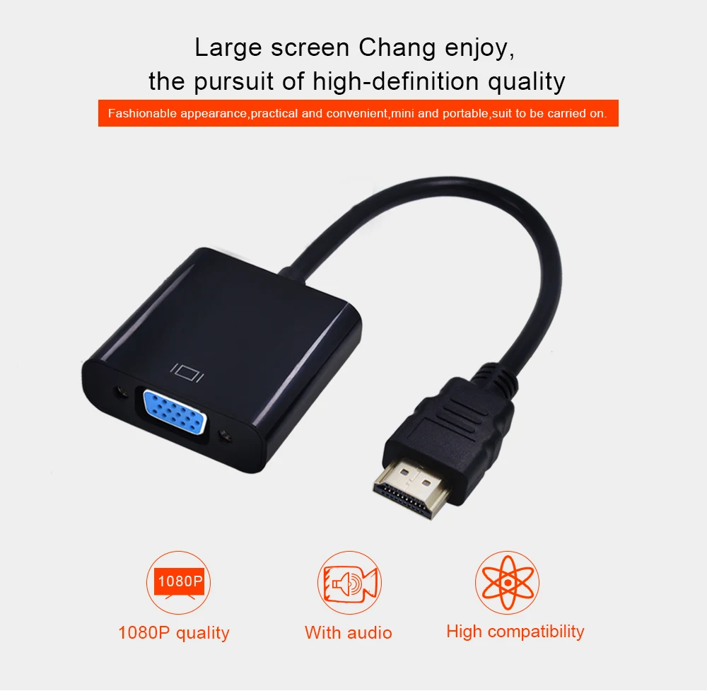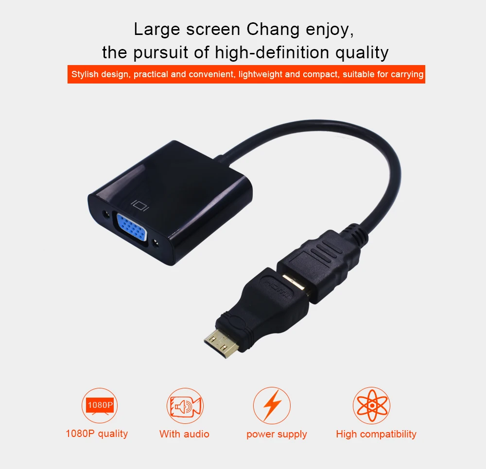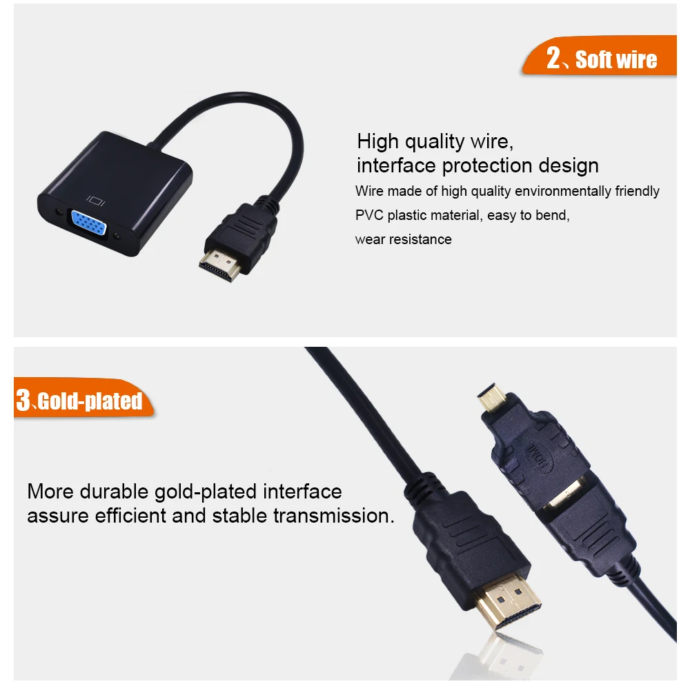 Comprar Convertidor de Cable HDMI de 10 uds, compatible con VGA, 1080P, con fuente de alimentación de Audio, adaptador macho a hembra para PC, portátil, TV y proyector