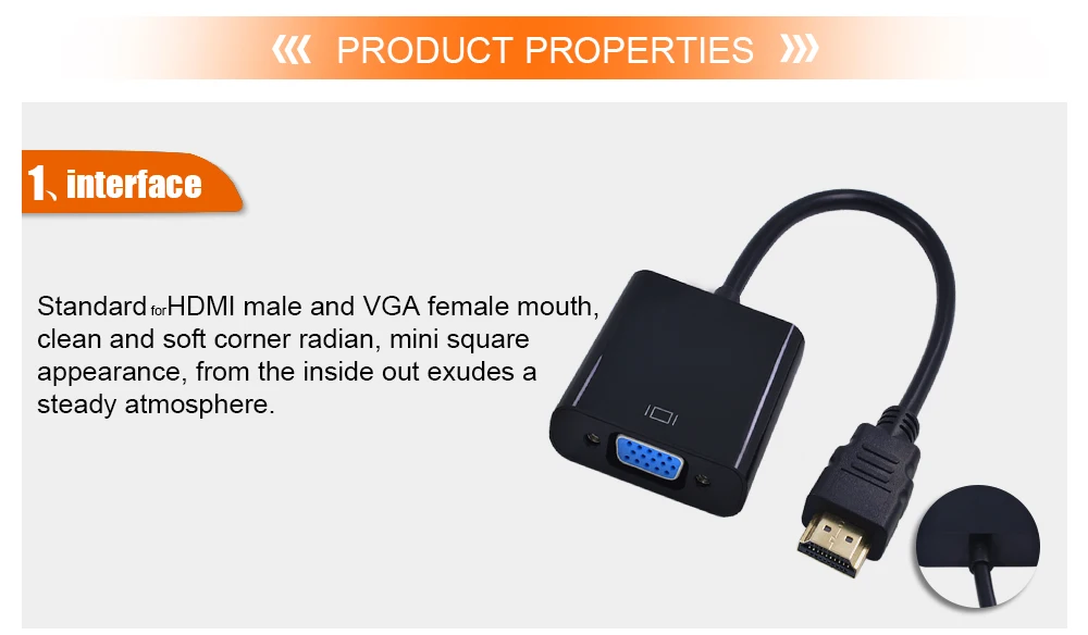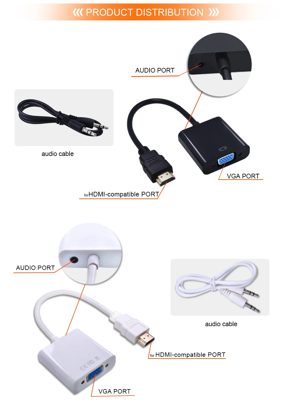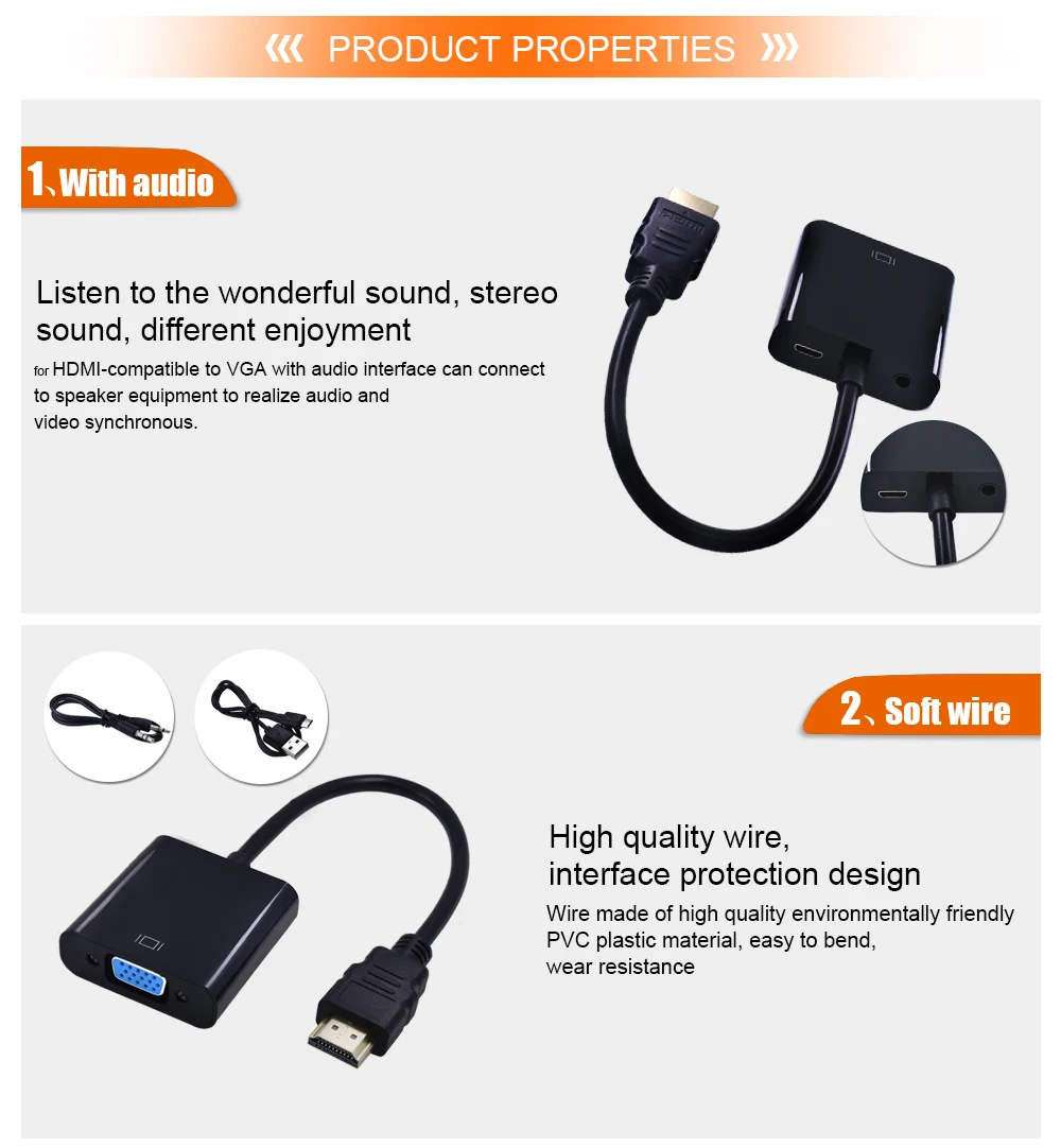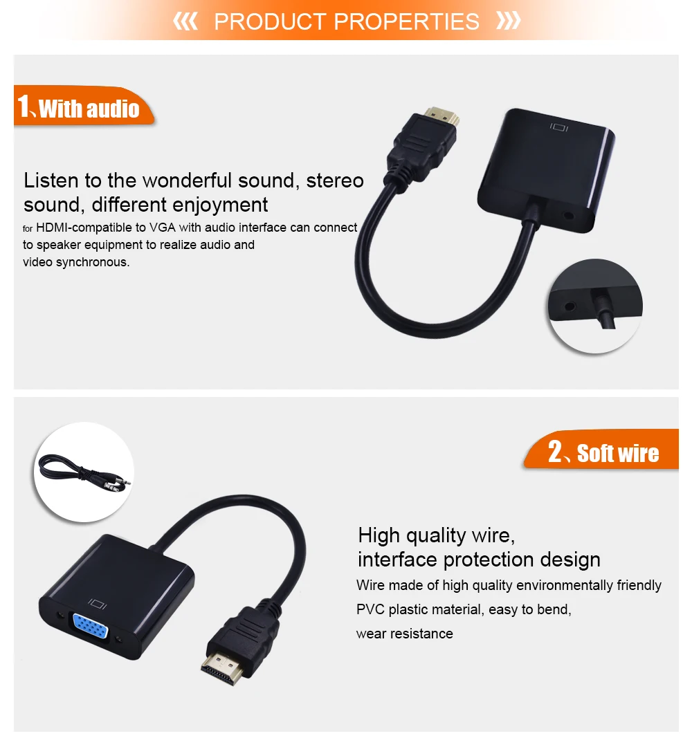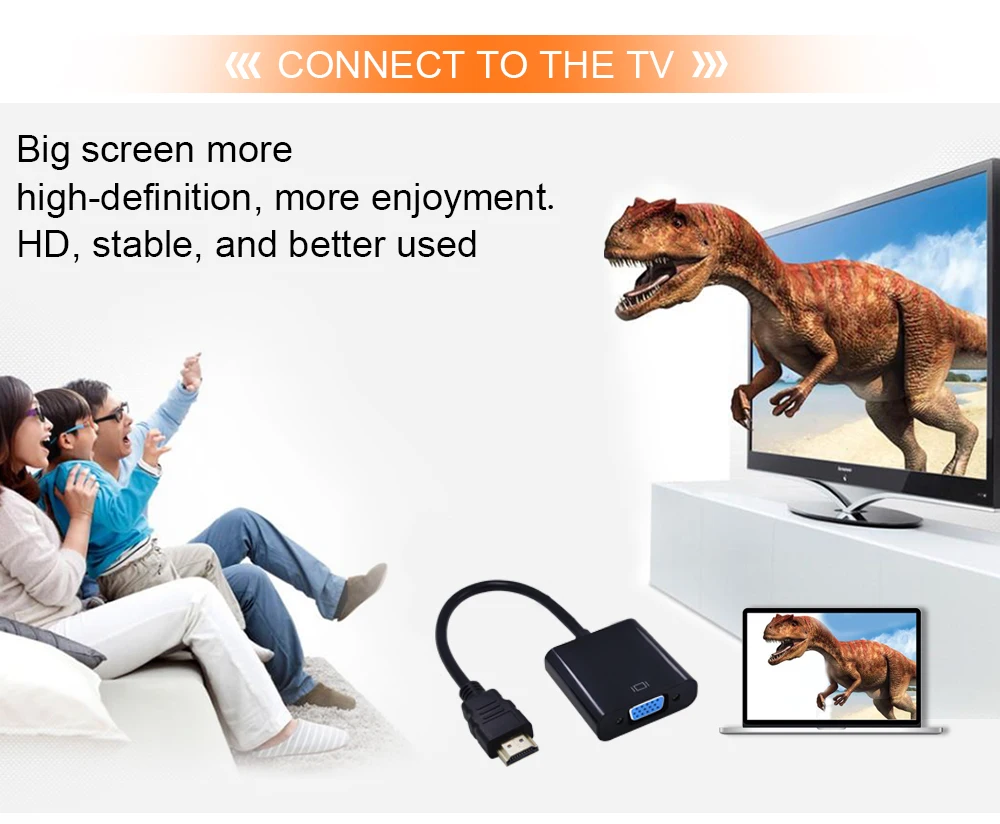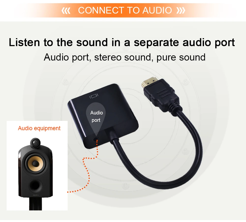 Comprar Convertidor de Cable HDMI de 10 uds, compatible con VGA, 1080P, con fuente de alimentación de Audio, adaptador macho a hembra para PC, portátil, TV y proyector
