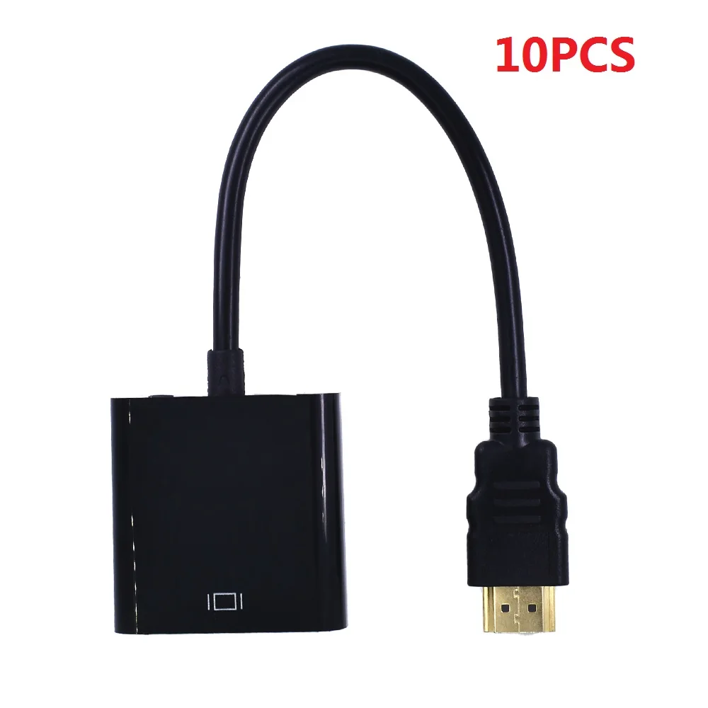 Comprar Convertidor de Cable HDMI de 10 uds, compatible con VGA, 1080P, con fuente de alimentación de Audio, adaptador macho a hembra para PC, portátil, TV y proyector