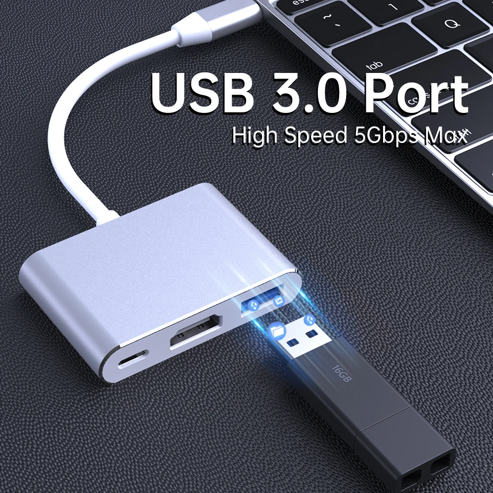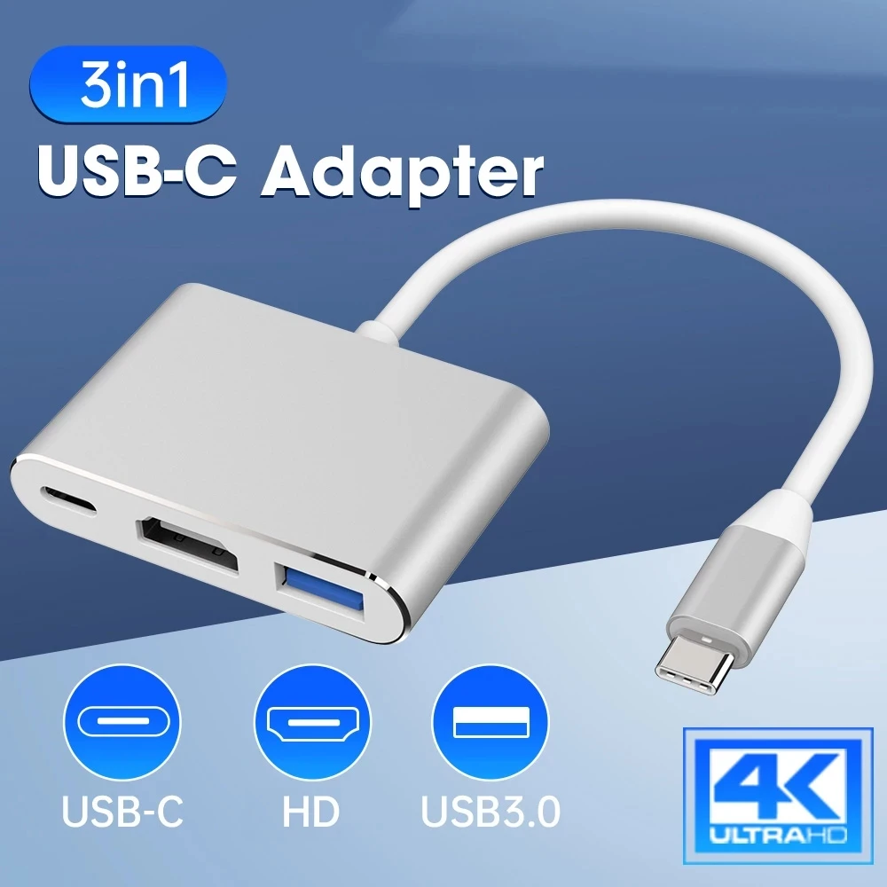 Comprar Convertidor de Cable USB-C a HDMI 3 en 1 para Samsung Huawei iPad Mac NS USB 3,1 tipo C a HDMI 4K USB 3,0 Cable adaptador USB 3,2